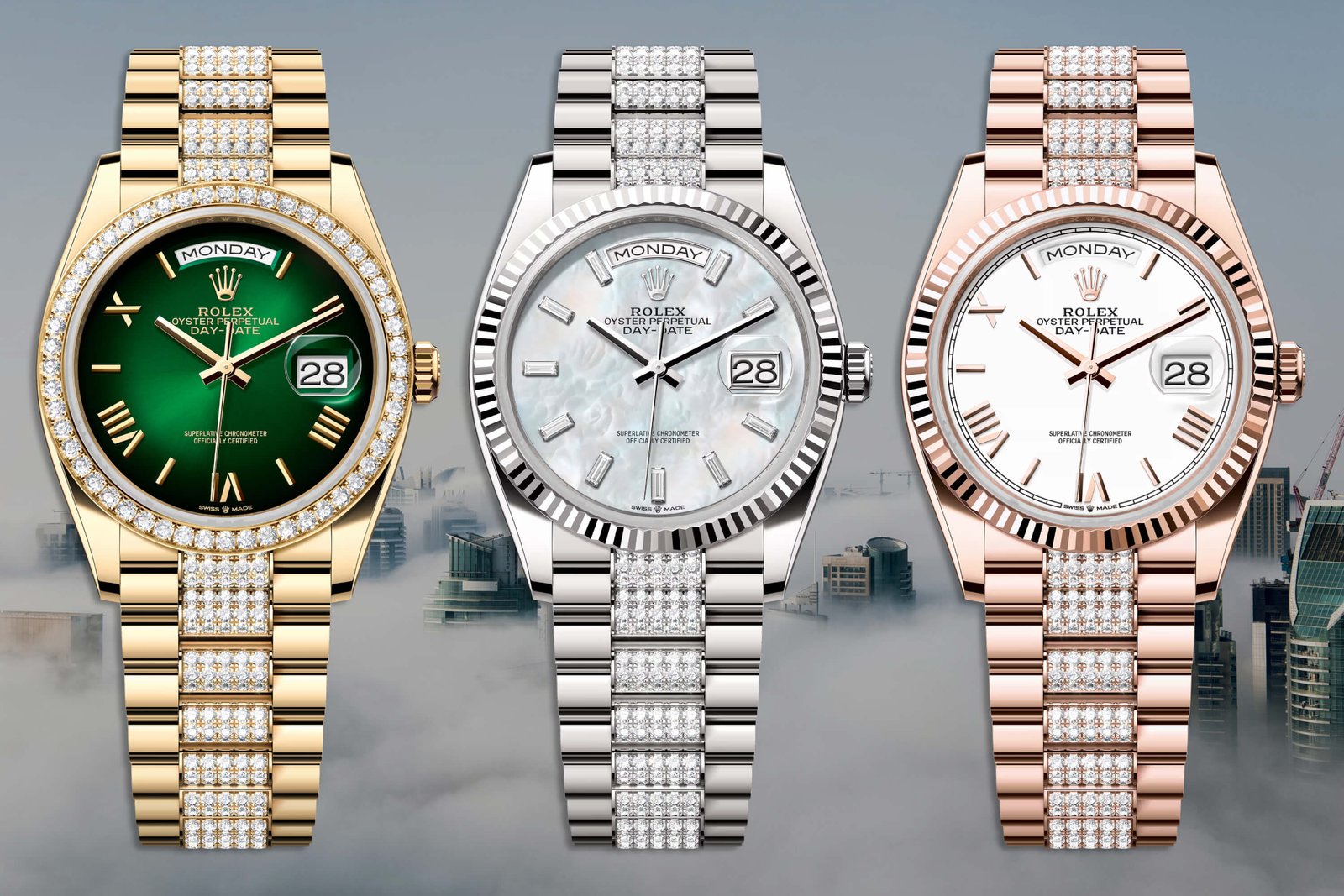 The cost of a Rolex with diamonds on the bracelet in our collection goes from $30,000 USD to $990,000 USD, depending on the condition of the timepiece.