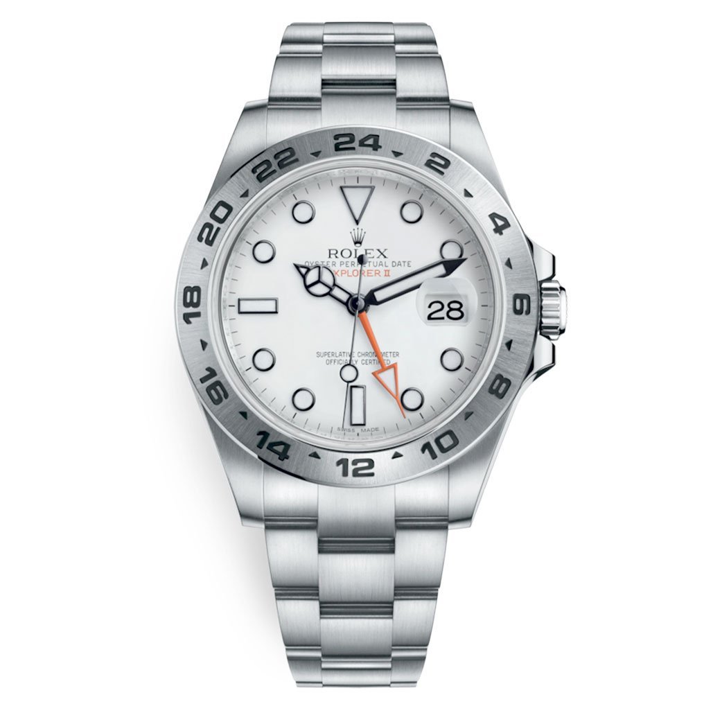 The 24-hour orange hand, a signature feature of the Explorer 2, provides an additional time zone reference, making it an invaluable tool for globetrotters.