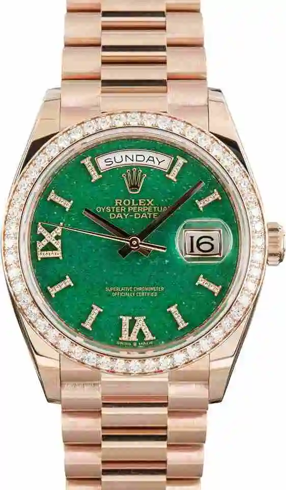 Rolex offers a wide array of materials, from durable Oystersteel to luxurious 18k gold (yellow, white, Everose) and prestigious 950 platinum, as well as two-tone Rolesor combinations. Dials come in countless colors and finishes, including popular green dials or elegant chocolate dials. Bracelet choices range from the sporty Oyster to the elegant President and the intricate Jubilee bracelet, allowing you to find a Rolex mens watch that perfectly matches your style.