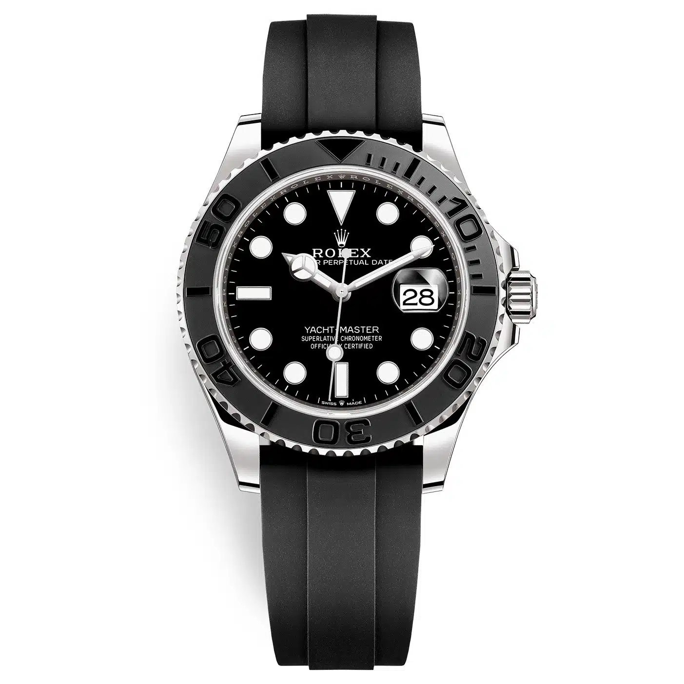 Discover the sleek sophistication of the Yacht-Master with a dark rhodium dial, offering a contemporary and understated elegance.