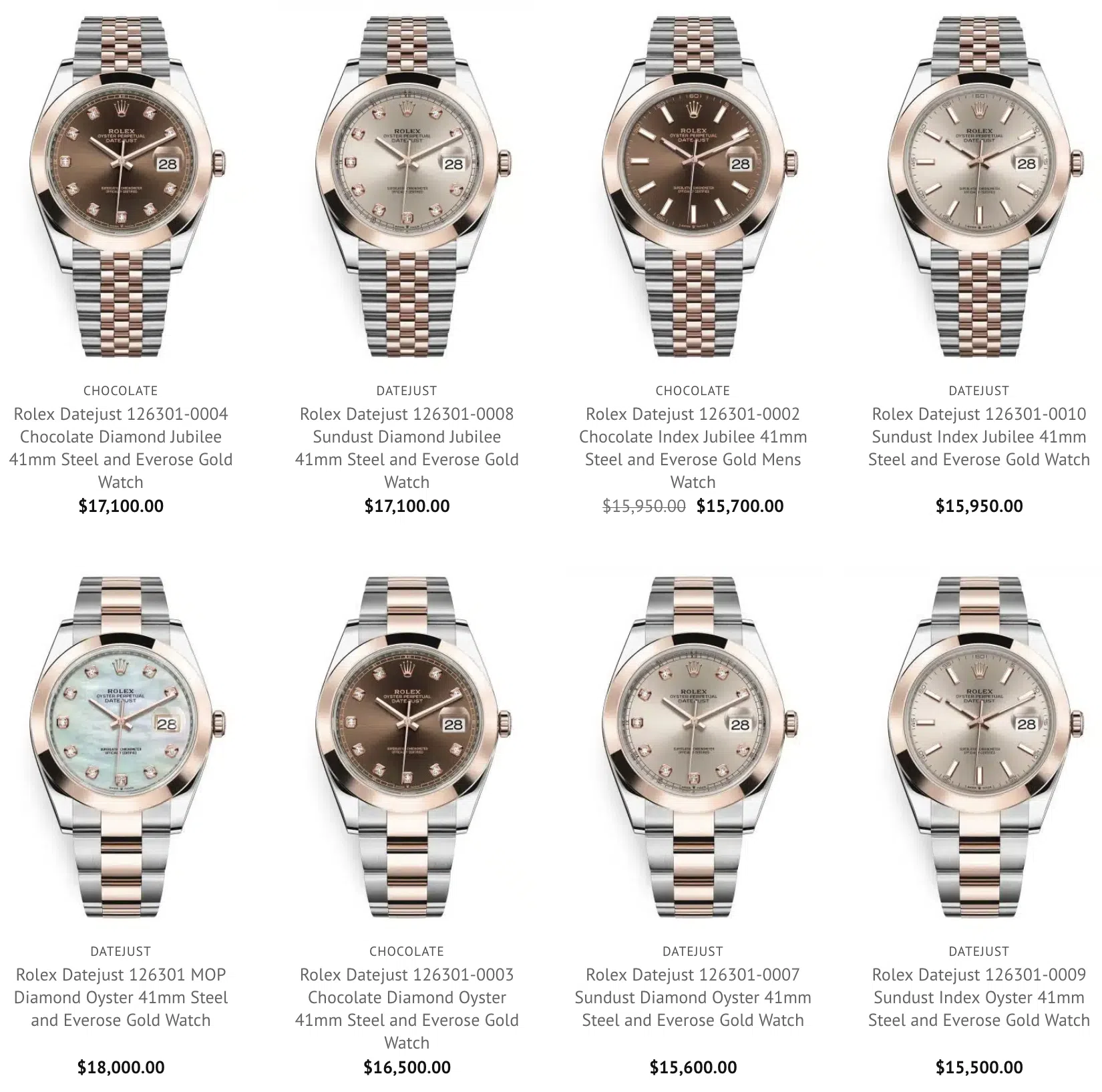 The cost of a Rolex 126301 Datejust in our collection goes from USD $15,500 to USD $19,750 depending on the condition of the timepiece.