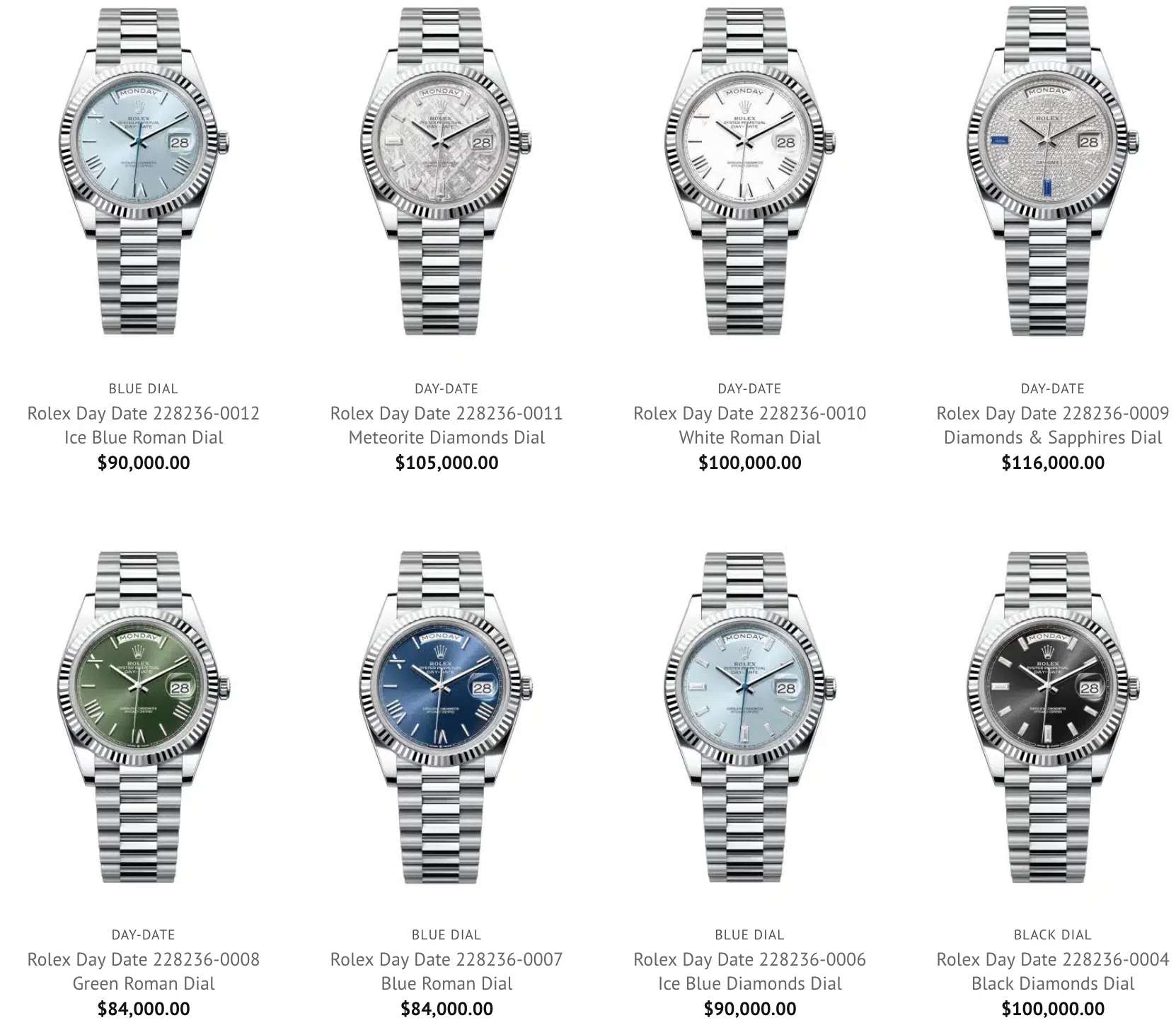 The cost for a Rolex 228236 in our collection goes from USD $85,000 to USD $94,000 depending on the model and condition.