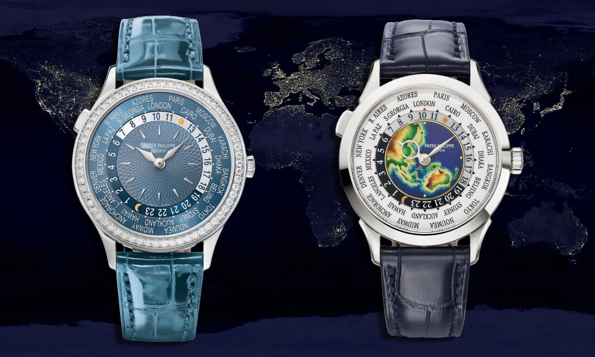 The Patek World Time Complications provides a 24 time zones at once, displaying the name of the cities around the globe.
