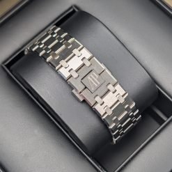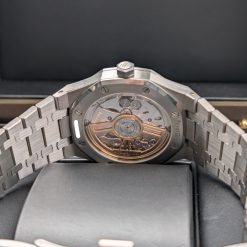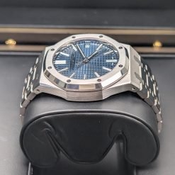 | Dial Material: | “Bleu nuit nuage 50” dial with “Grande Tapisserie” pattern, white gold applied hour-markers and Royal Oak hands with luminescent coating |