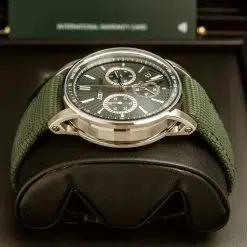 | Dial Material: | Green dial, green counters and rhodium-toned external zone, green counter at 6, white gold hour-markers and hands with luminescent coating, green inner bezel |