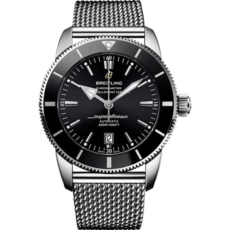 The Superocean Heritage II collection pays homage to Breitling’s rich diving heritage while incorporating contemporary design elements and advanced technical capabilities. This 46mm model showcases exceptional craftsmanship through its meticulously finished stainless steel case and integrated mesh bracelet, offering both comfort and durability. The black ceramic bezel insert provides superior scratch resistance and maintains its luster over time, while the sapphire crystal ensures optimal legibility in all conditions. Breitling’s Calibre B20 movement, developed in partnership with Tudor, delivers outstanding reliability and precision with its 70-hour power reserve. The watch’s balanced proportions and elegant aesthetic make it versatile for both professional diving scenarios and sophisticated social events. Its 200-meter water resistance and unidirectional bezel provide essential safety features for underwater exploration, while the refined design elements ensure it transitions seamlessly to formal occasions. The Superocean Heritage II represents the perfect fusion of Breitling’s technical expertise and design heritage.