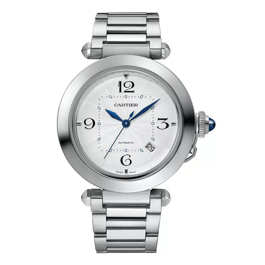 The Pasha de Cartier collection traces its origins to the 1930s, originally created for the Pasha of Marrakesh who required a water-resistant watch for swimming. This modern interpretation preserves the collection’s distinctive design codes while incorporating contemporary technical advancements. The square-within-a-circle case design represents Cartier’s mastery of geometric aesthetics, while the protective crown cap secured by a small chain ensures both functionality and visual harmony. The silver-toned dial features a sophisticated combination of Arabic numerals and index markers, enhanced by the iconic blued-steel diamond-shaped hands that demonstrate Cartier’s attention to detail. The automatic Caliber 1847 MC movement provides reliable timekeeping with date complication, housed within a case that balances substantial presence with elegant proportions. Ideal for discerning individuals who appreciate both horological excellence and artistic design, the Pasha excels in professional settings, formal events, and sophisticated casual occasions where its Parisian refinement and technical reliability shine equally.