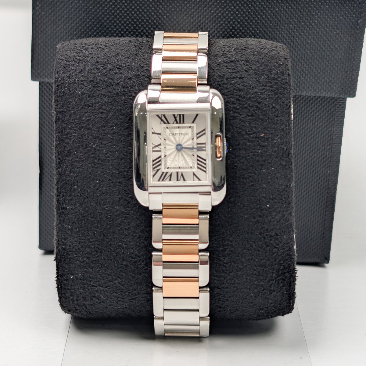 Cartier ref 3485 Tank Anglaise Small Steel Rose Gold Ladies 23mm Watch, 2-year warranty with Luxury Watches USA and Cartier Box