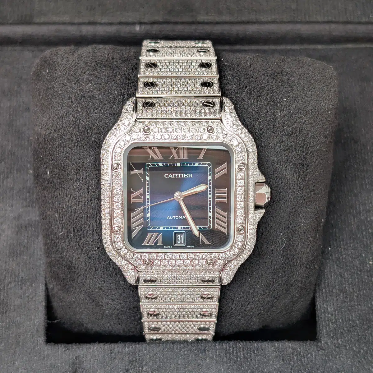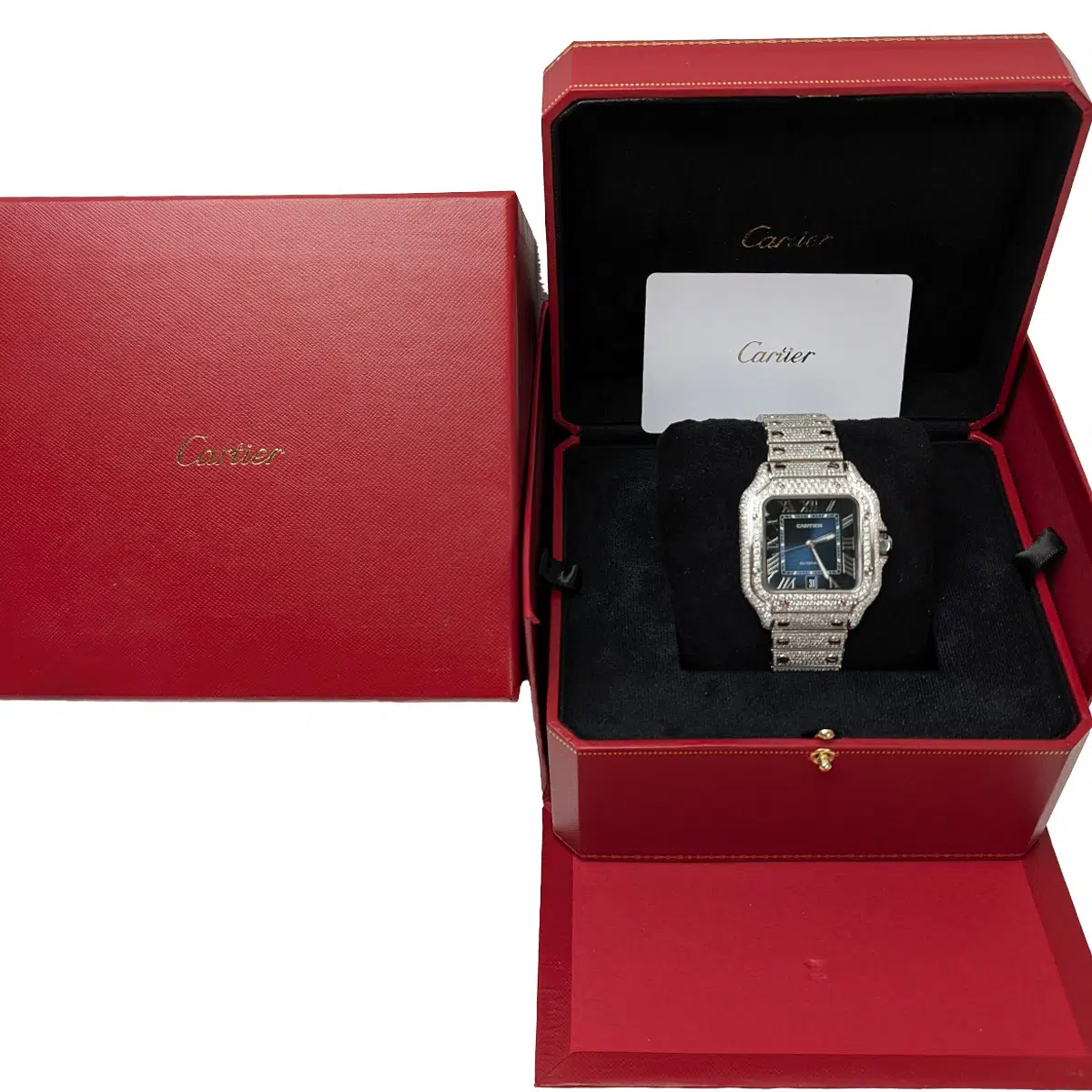 Cartier WSSA0030 Santos De Cartier Large Blue Dial Aftermarket Diamonds 39.8mm Watch $10,900.00