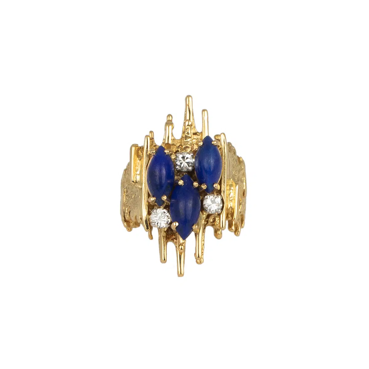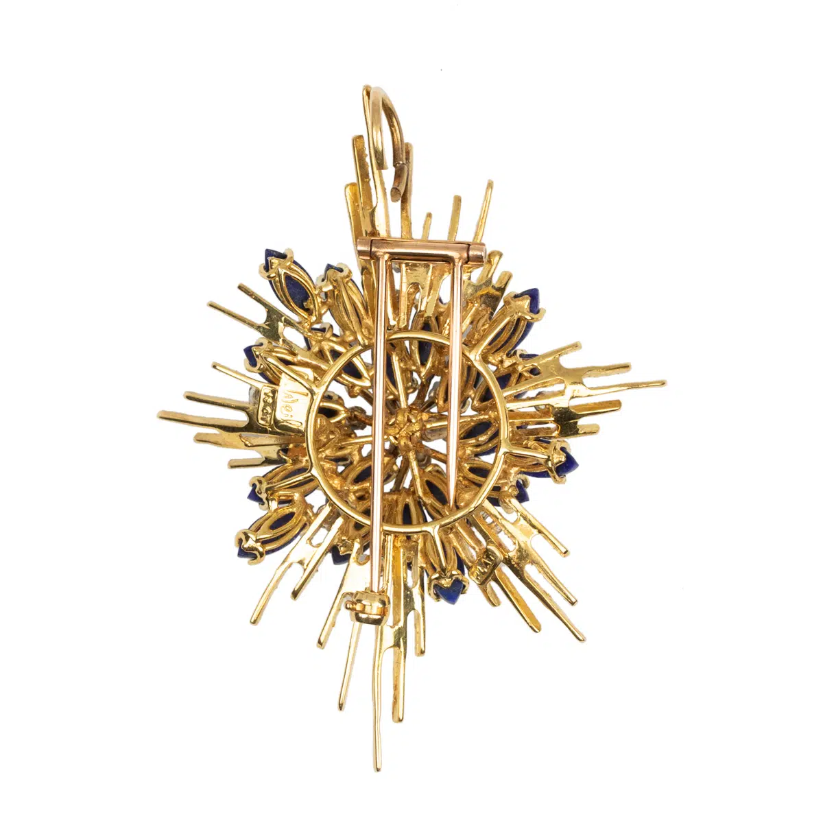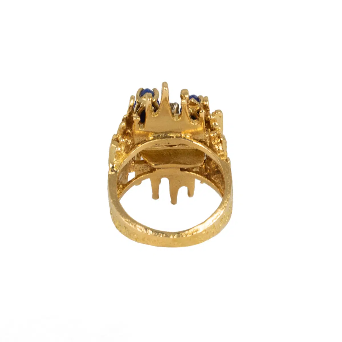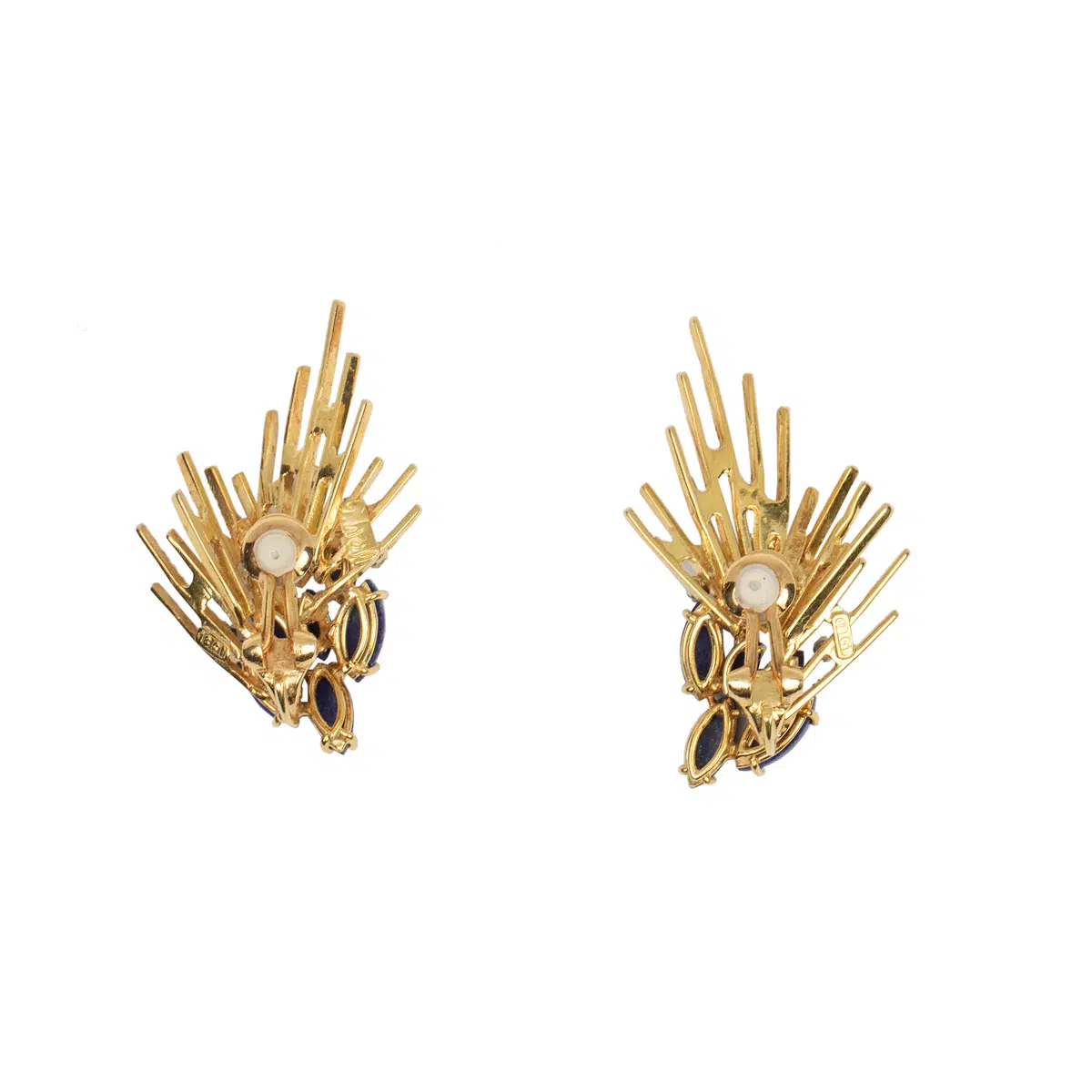 Diamond and Sapphire Jewelry Set of Ring, Earrings and Brooch 18K Yellow Gold (G.Weil signed)