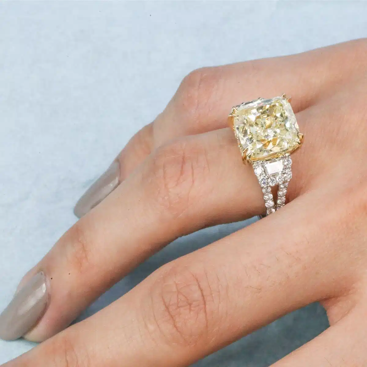 Fancy Yellow Light 18k White Gold Two-Tone Engagement Ring with Diamonds