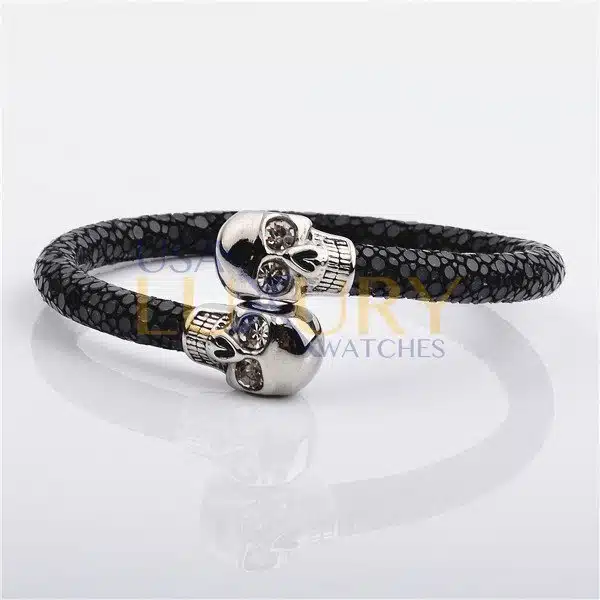 High Quality Charming Design North Skull Stainless Steel Charm With Real Stingray Leather Men’s Bracelet