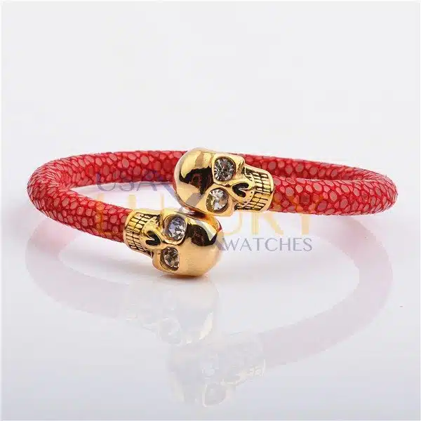 High Quality Charming Design North Skull Stainless Steel Charm With Real Stingray Leather Men’s Bracelet