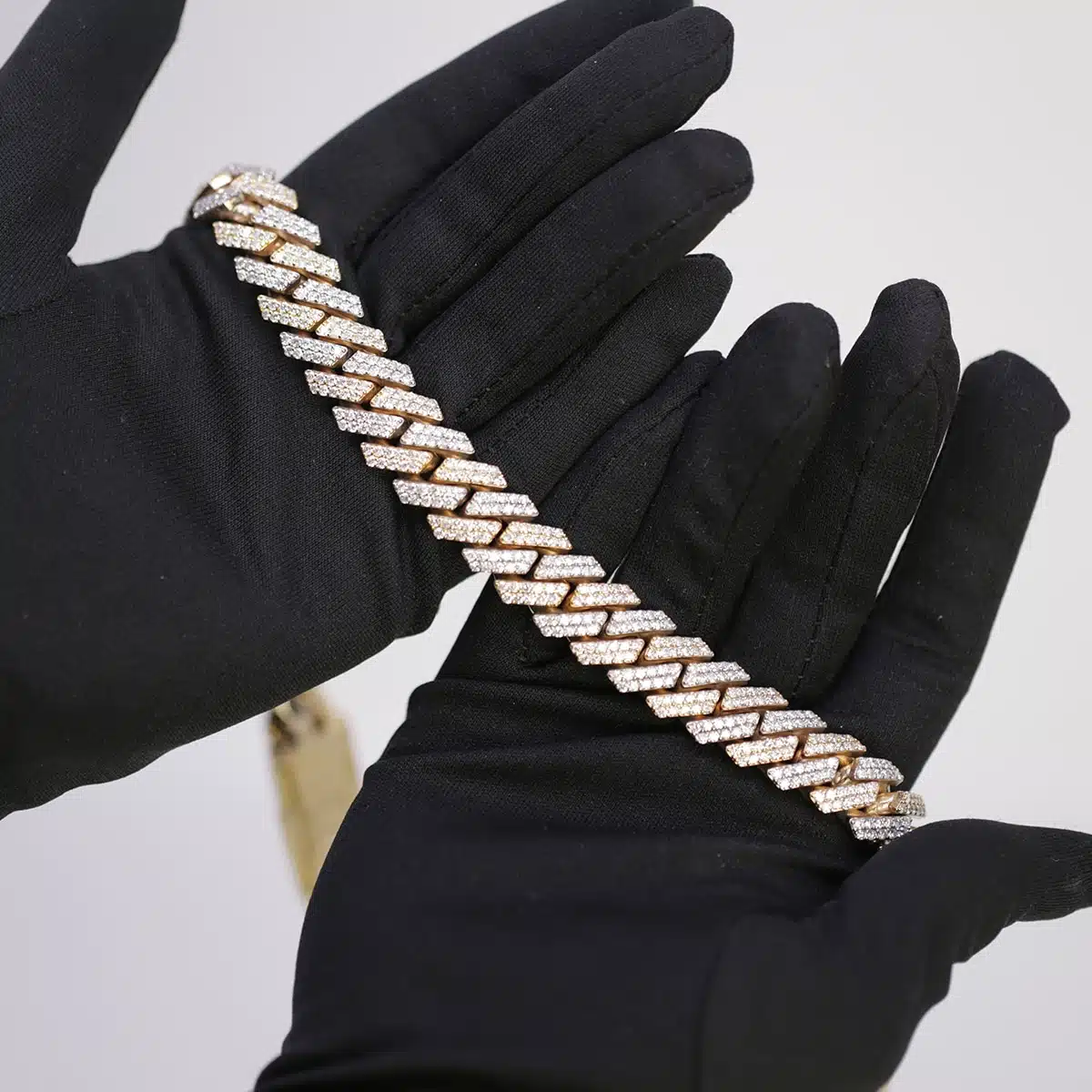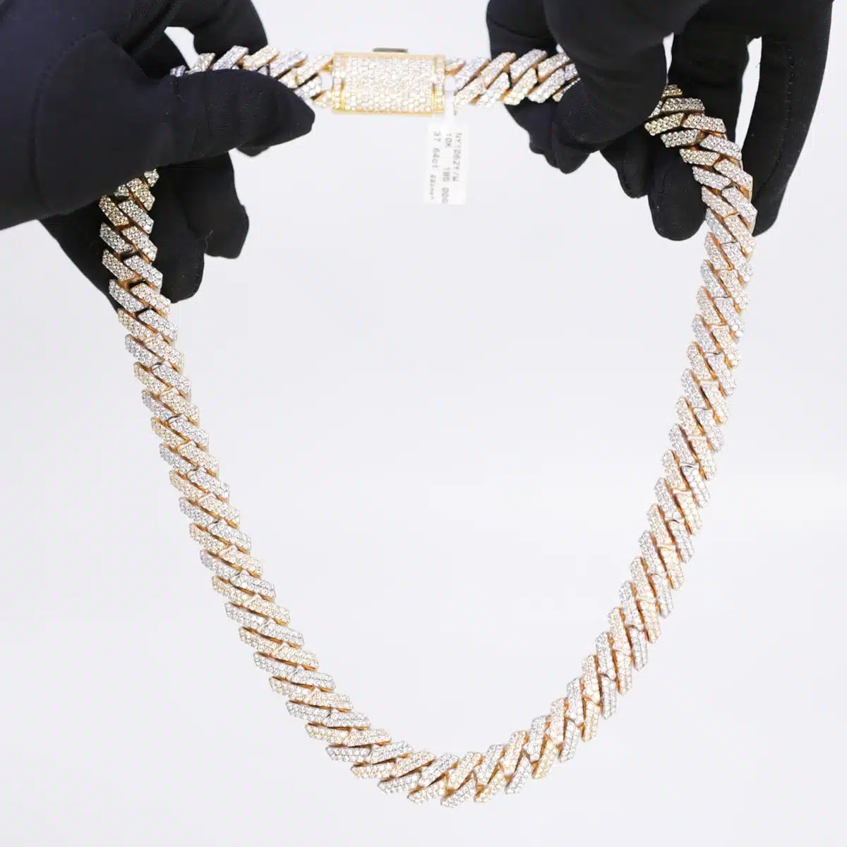 Old Cuban Diamond Pavé-Set 22″ 37.64ct Two-Tone 10K Yellow Gold and White Gold Chain