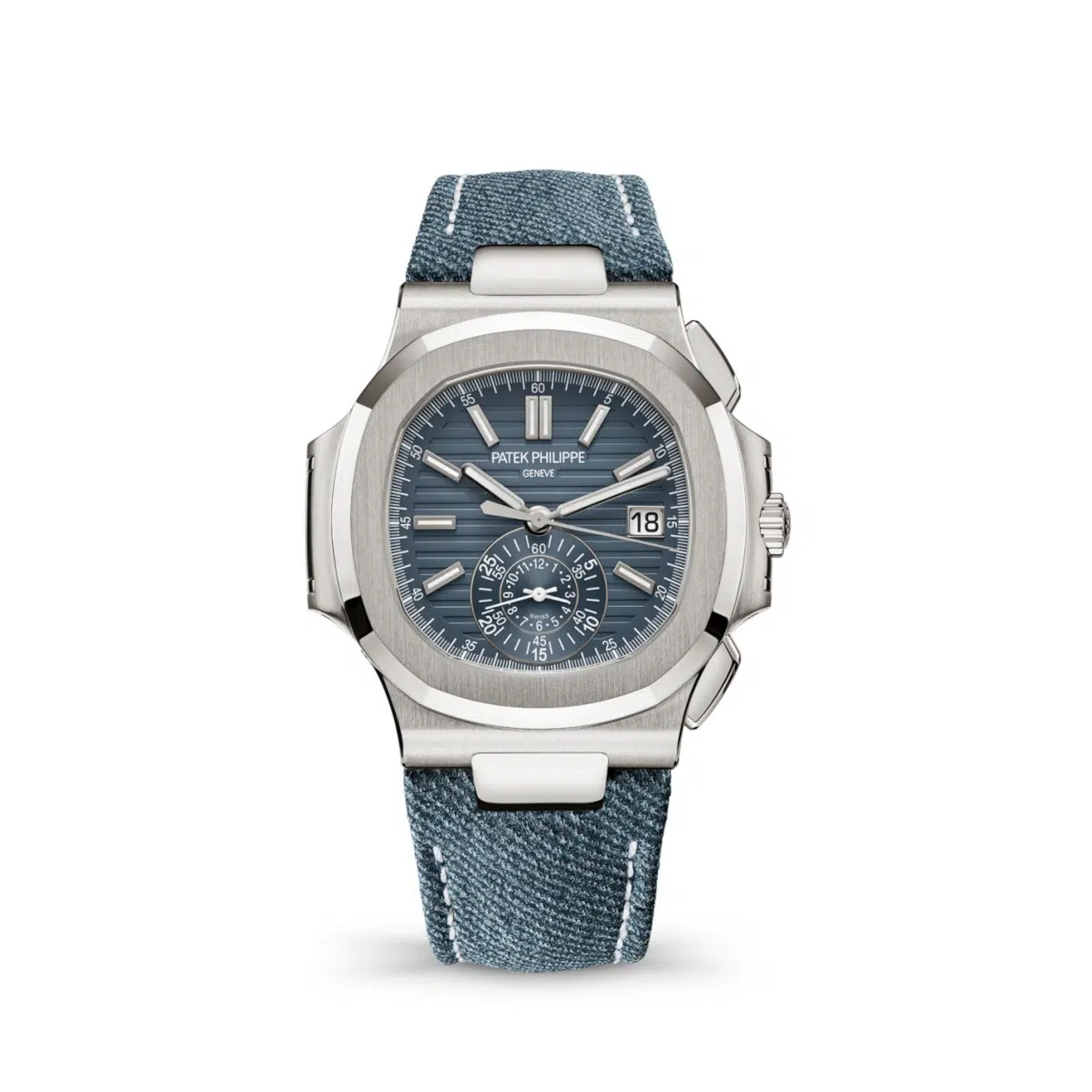 Patek Philippe 5980-60G-001 Nautilus Opaline Blue-Gray Dial Blue-Gray Calfskin Leather Strap
