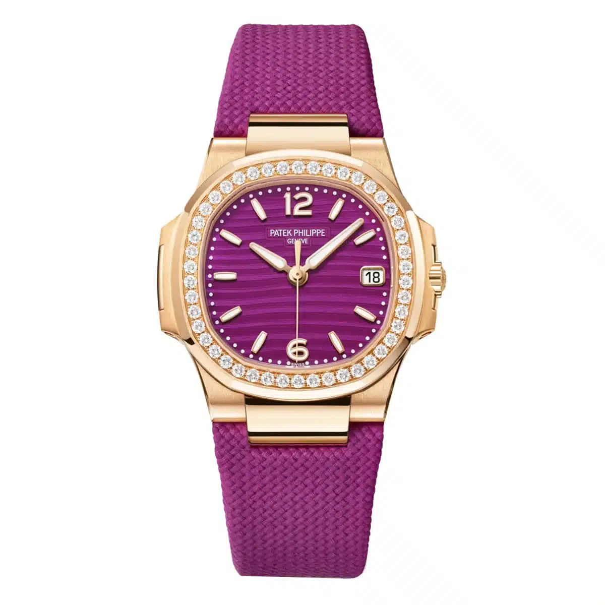 Unworn Patek Philippe 7010R-013 Nautilus Quartz Purple 32mm Watch, Complete Set (Patek Philippe Box and Patek Philippe Papers)