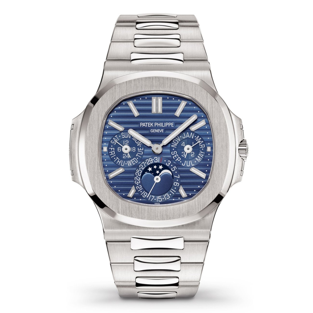 The Patek Philippe Nautilus 5740/1G-001 stands as the first perpetual calendar within the iconic Nautilus collection, representing a significant milestone in contemporary watchmaking. Designed with the signature porthole-inspired case and integrated bracelet, this timepiece maintains the collection’s distinctive aesthetic while incorporating one of horology’s most prestigious complications. The perpetual calendar mechanism automatically accounts for varying month lengths and leap years, requiring no adjustment until 2100. The ultra-thin Caliber 240 Q movement, visible through the sapphire caseback, showcases Patek Philippe’s exceptional craftsmanship with exquisite finishing and the iconic 22K gold mini-rotor. Ideal for formal occasions and executive settings, this watch transitions seamlessly from boardroom to evening events, embodying understated elegance and technical mastery. The white gold construction offers a subtle sophistication that complements both business attire and formal wear, making it a versatile companion for the discerning collector who appreciates both heritage and innovation.