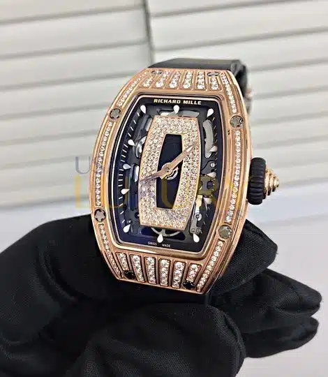 Richard Mille RM 07-01 Rose Gold Medium Set Diamonds Onyx Dial Watch