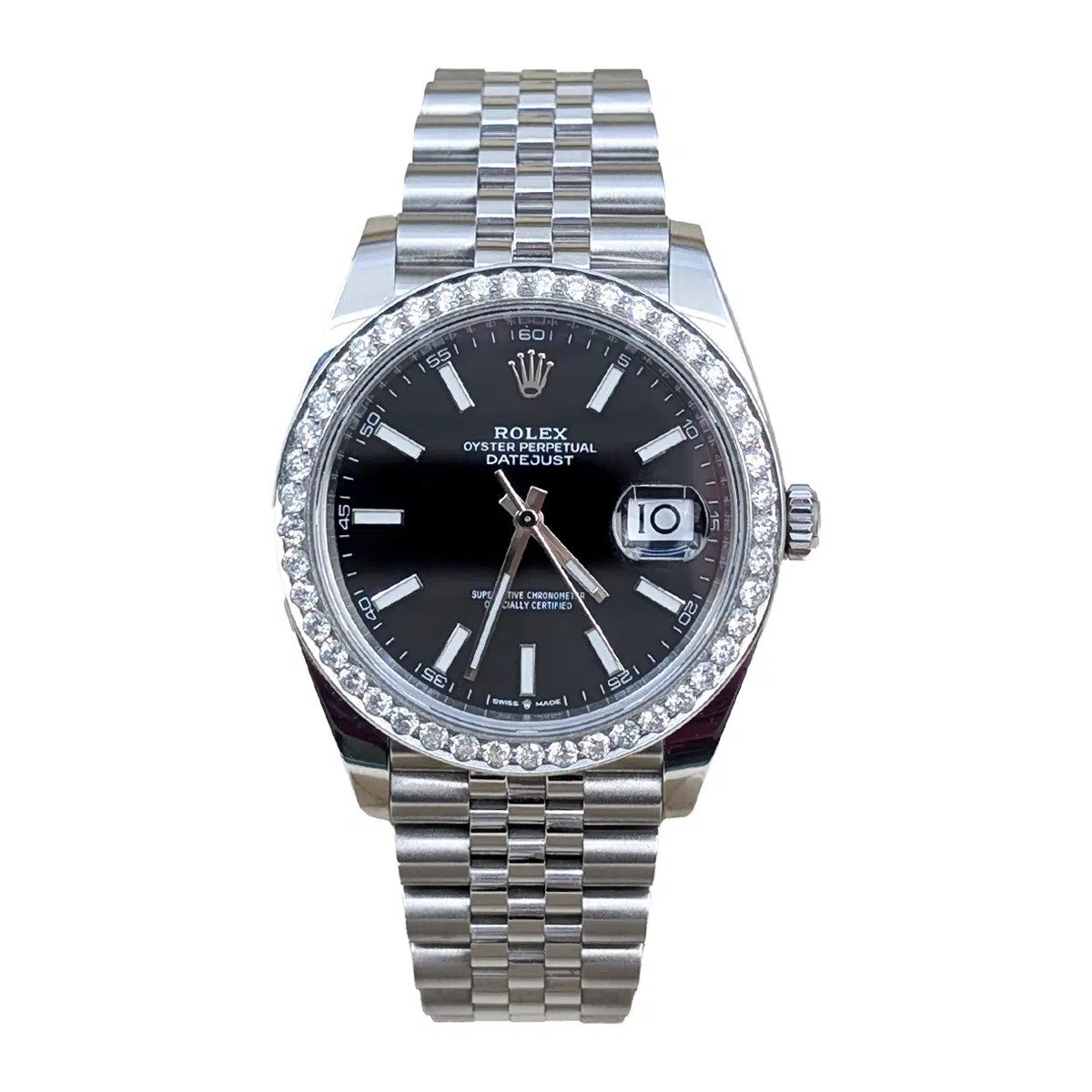 Rolex 126300 41mm Black Index Dial Aftermarket Diamond Bezel