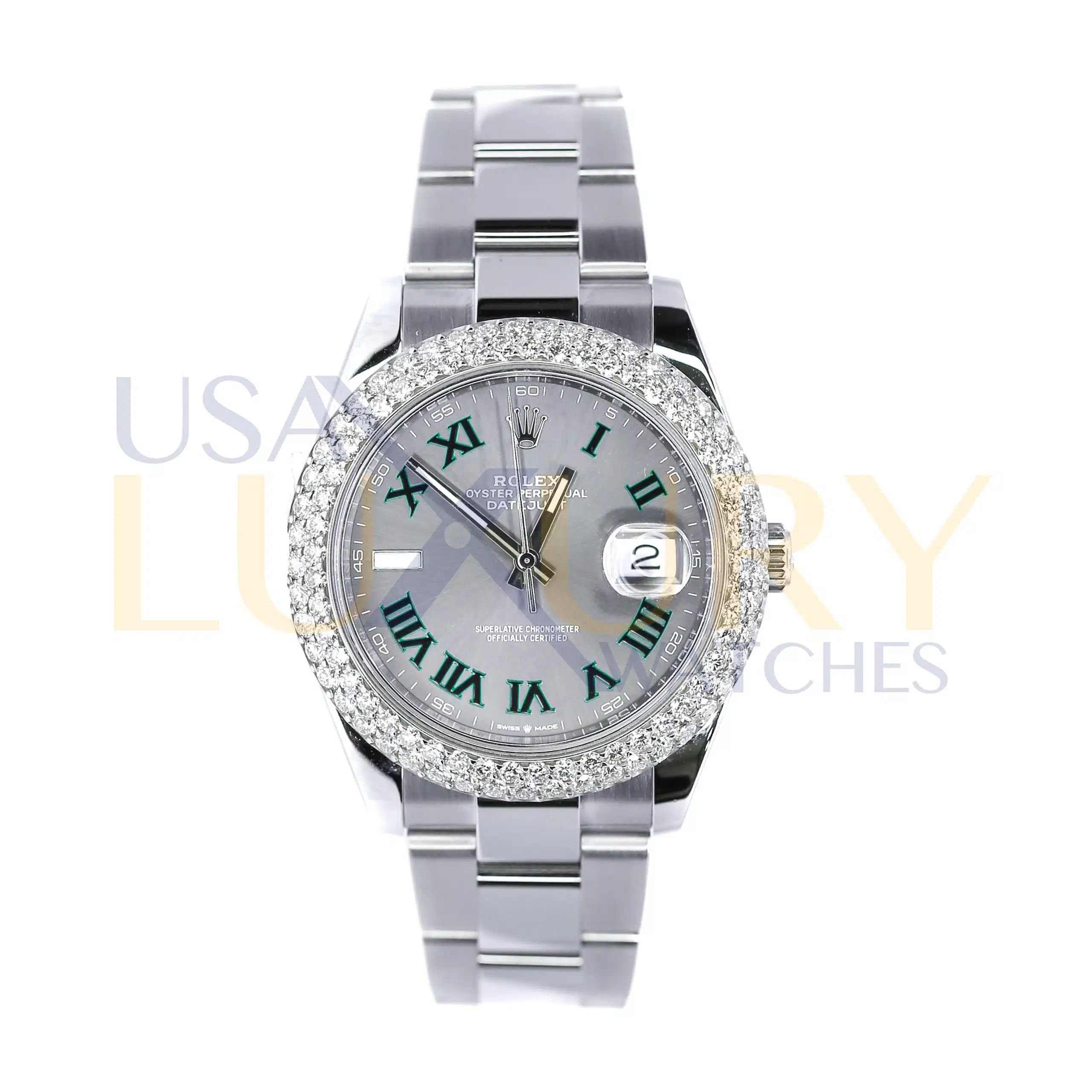 Rolex 126300 Datejust Wimbledon 41mm Aftermarket Diamond Bezel Watch