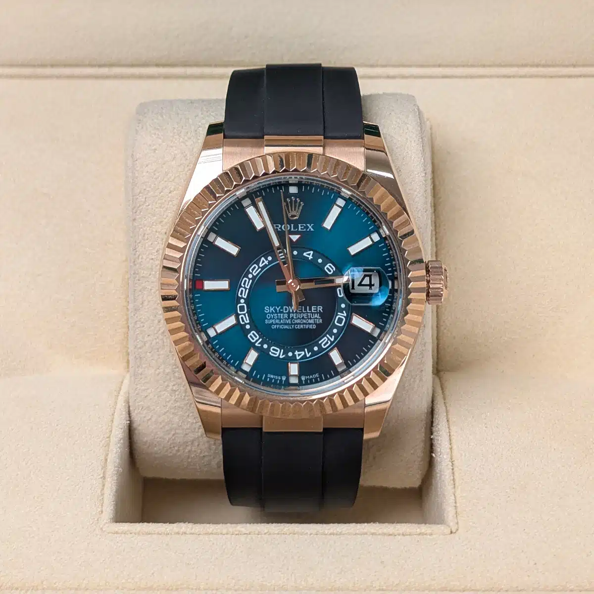 Rolex 326235 Sky-Dweller Rose Gold Aftermarket Blue-Green Dial 42mm Oysterflex