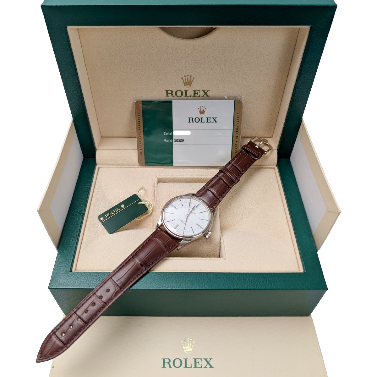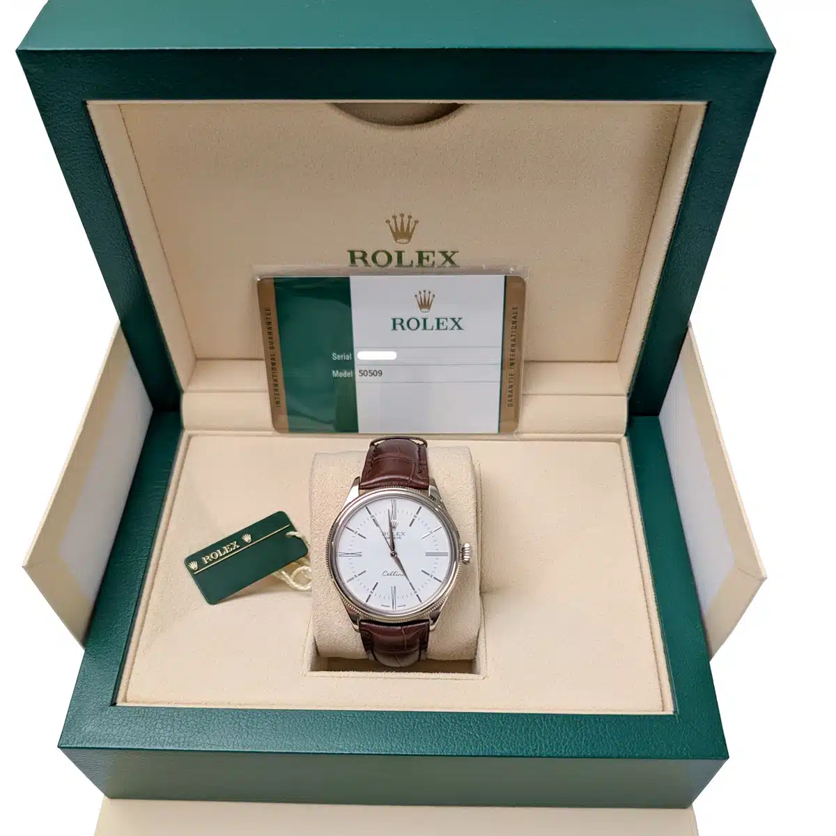 Rolex 50509 Cellini Time White Dial Leather Strap 39mm Mens Watch $12,790.00