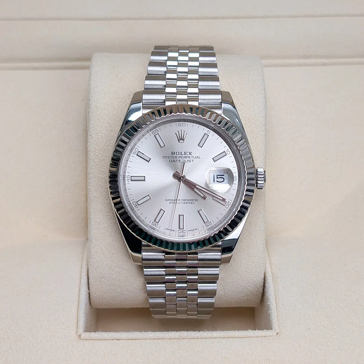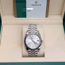 Rolex Datejust 126334-0004 Silver Index Jubilee 41mm Stainless Steel Mens Watch, Complete Set (Rolex Box and Rolex Card)