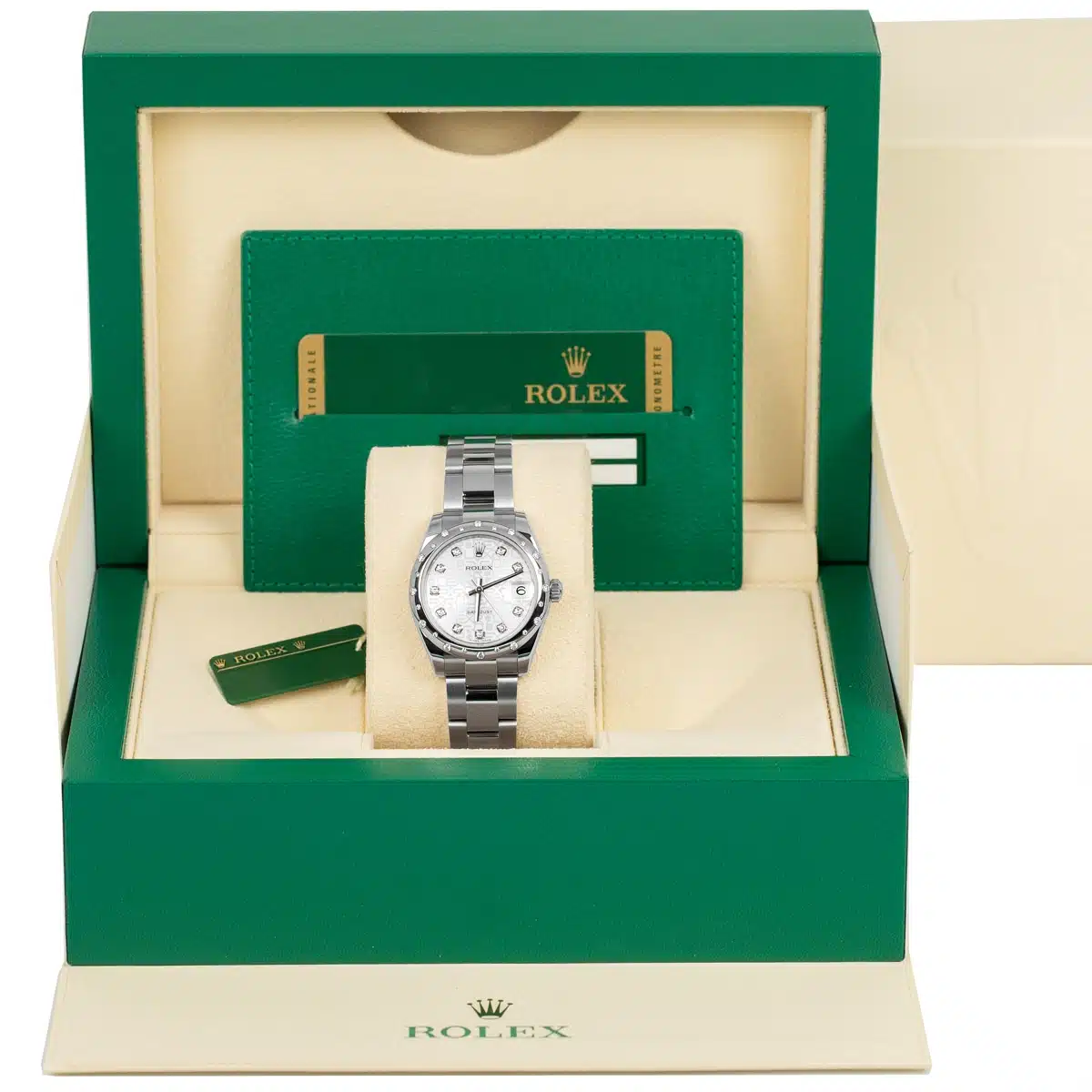 Rolex Datejust 178344 31mm Rolex Diamond Dial Diamond Bezel Watch, Complete Set (Box and Papers 2012, green Rolex tag)