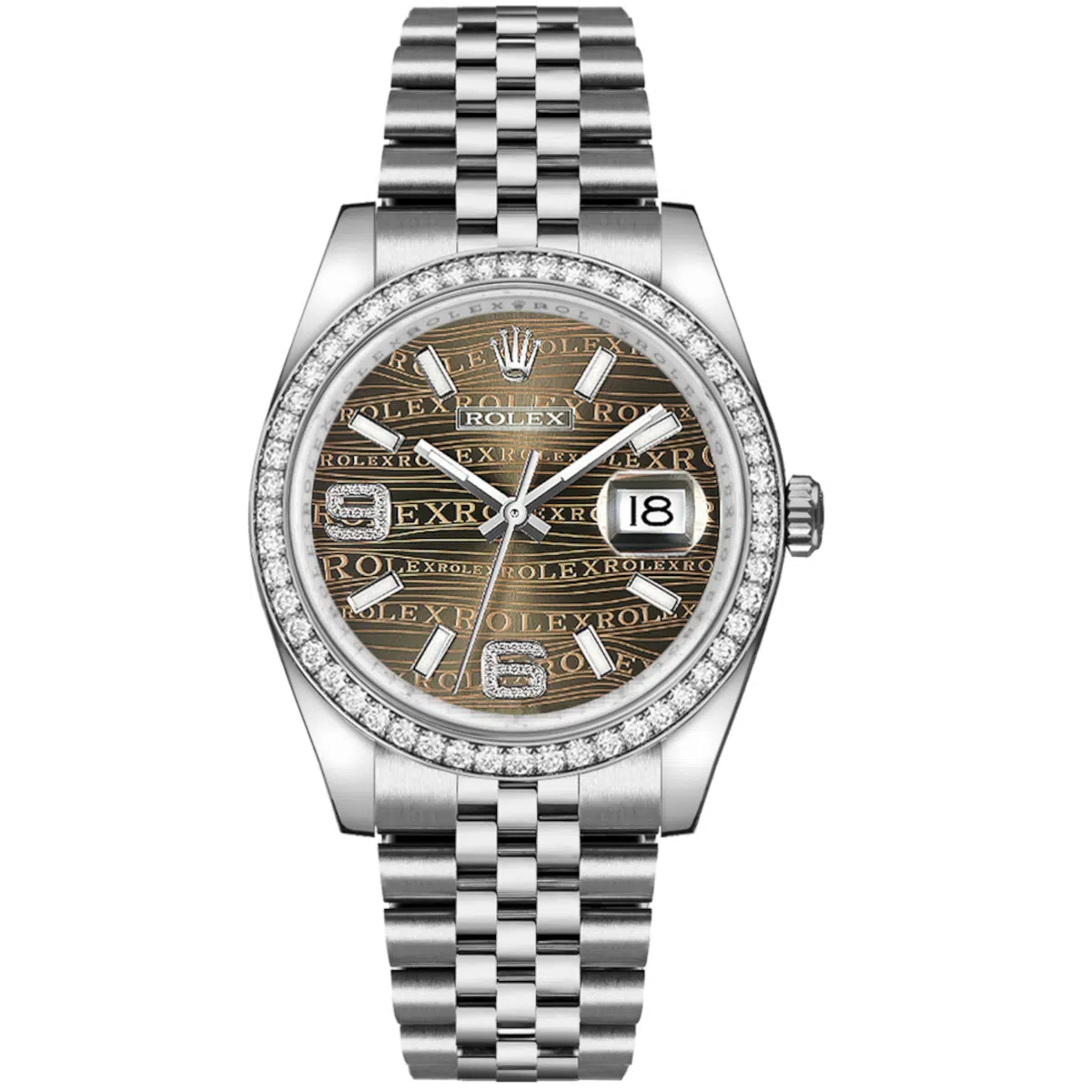 Rolex Datejust 116244-0034 Bronze Wave Pattern Arabic Numeral Set with Diamonds 36mm Dial Diamond Set Bezel Oystersteel Jubilee Bracelet Watch