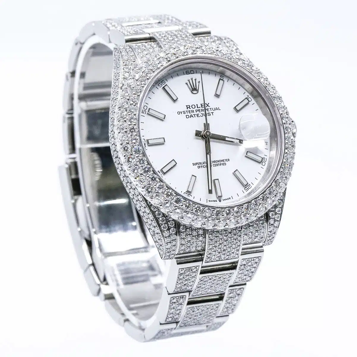 Rolex Datejust 41mm 126300 Iced Out White Stick Dial Oyster Bracelet Mens Watch