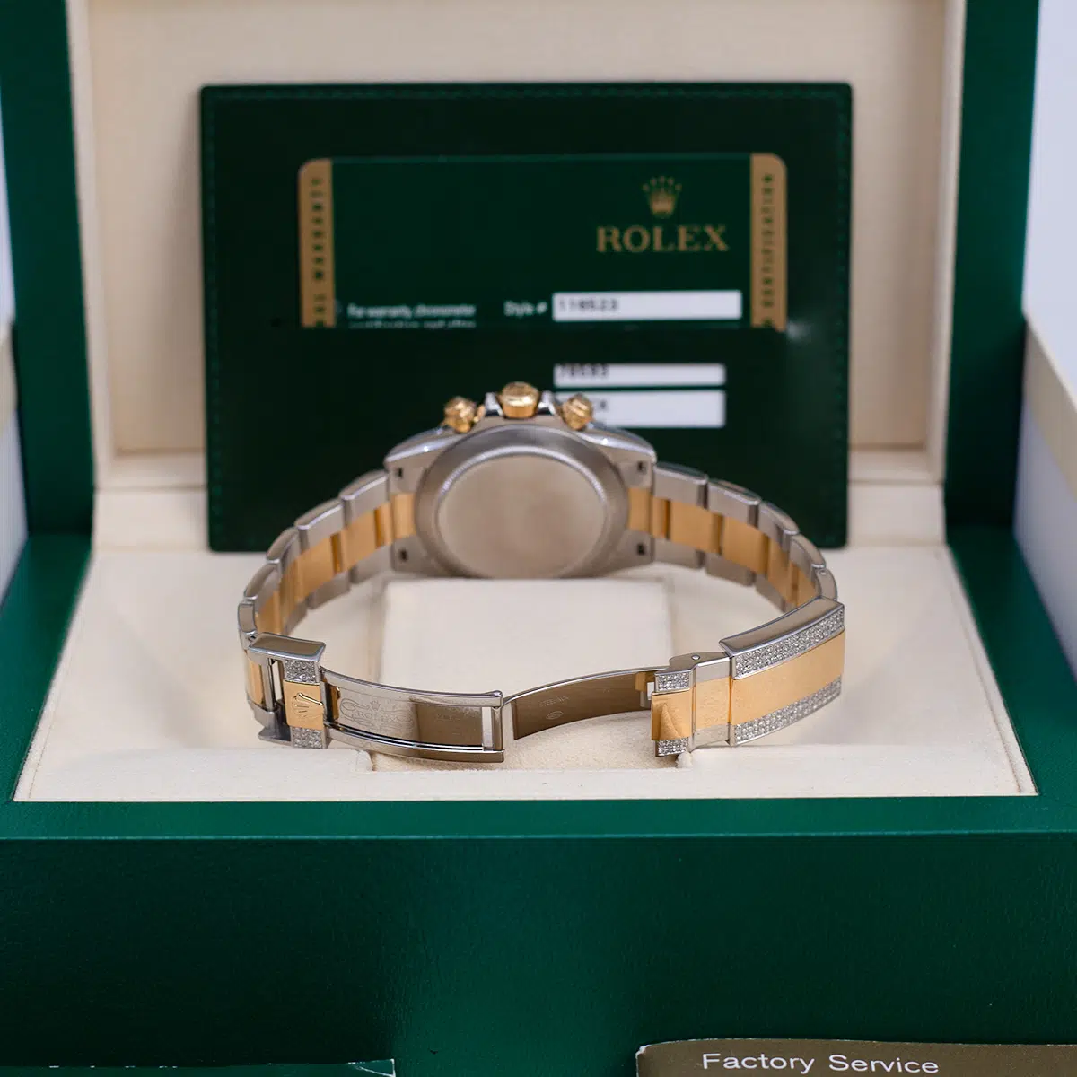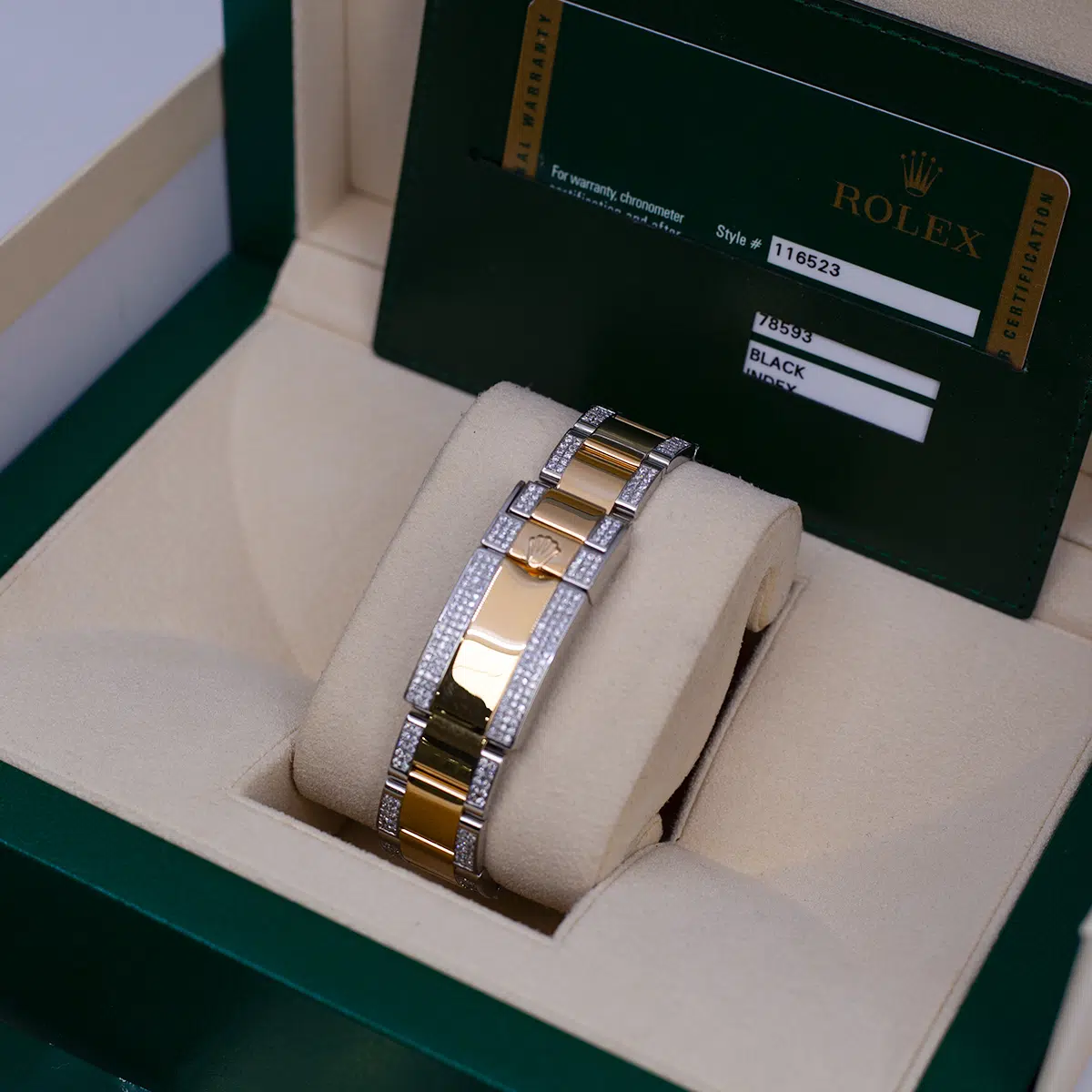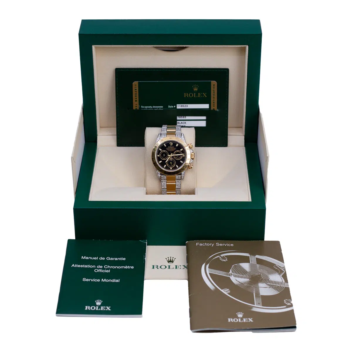 Rolex Daytona 116523 Black Dial Aftermarket Iced Out Bracelet and Lugs 40mm $24,000.00