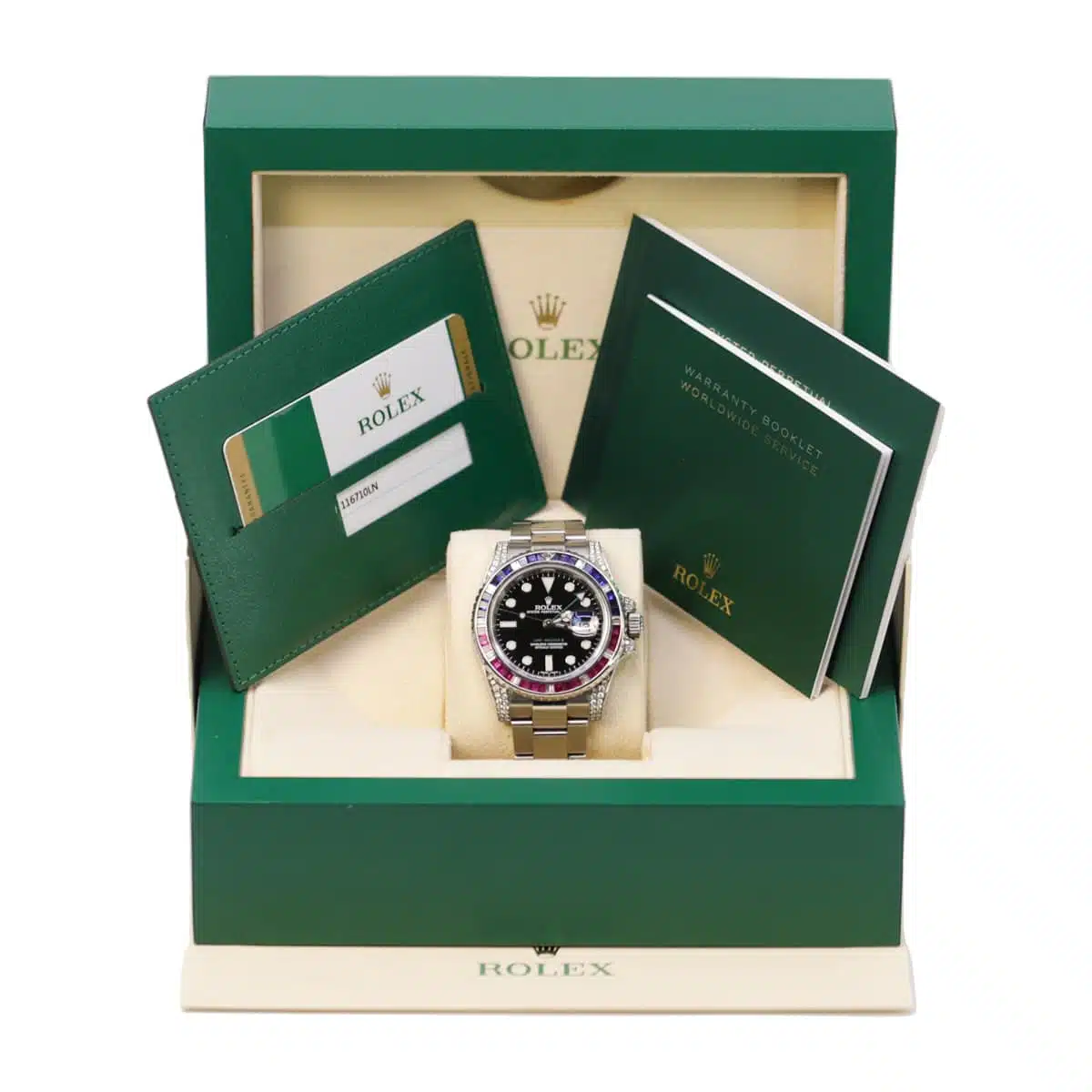Rolex GMT-Master II 116710LN 40 mm Aftermarket Sapphire Ruby Diamond Bezel and Lugs