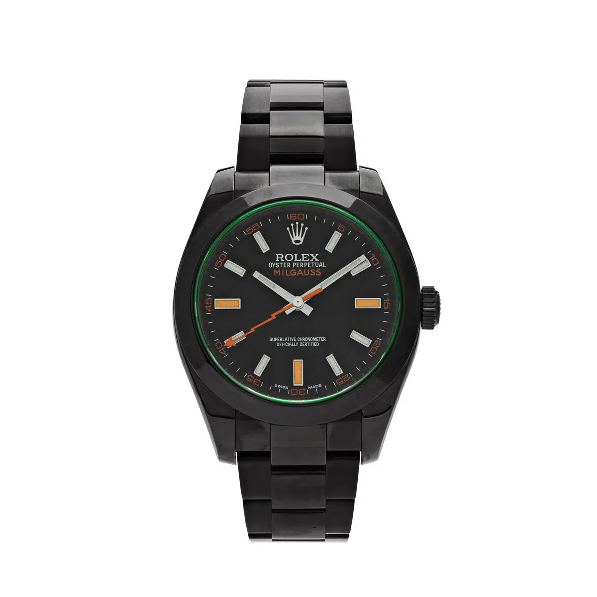 Rolex Milgauss 116400GV Green Crystal Black Dial Black PVD Oyster Bracelet Watch