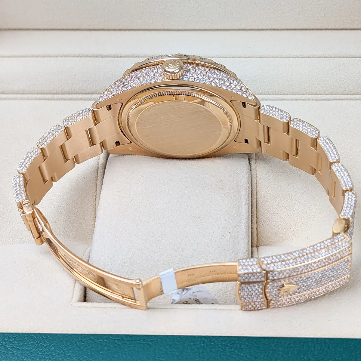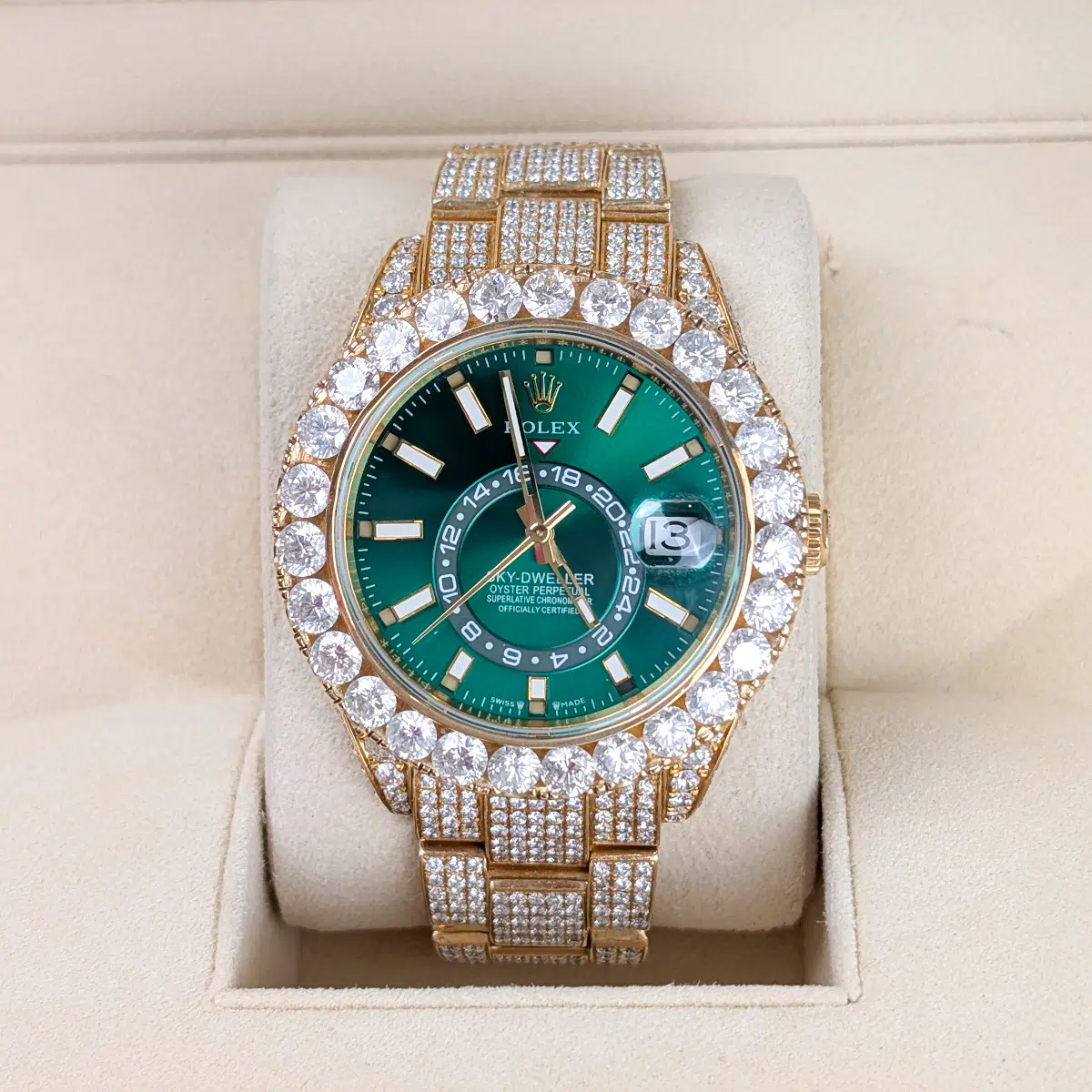 Rolex Sky-Dweller 326938 42mm Aftermarket Green Dial Iced Out Oyster Bracelet Watch, 2-year warranty with Luxury Watches USA and Rolex Box