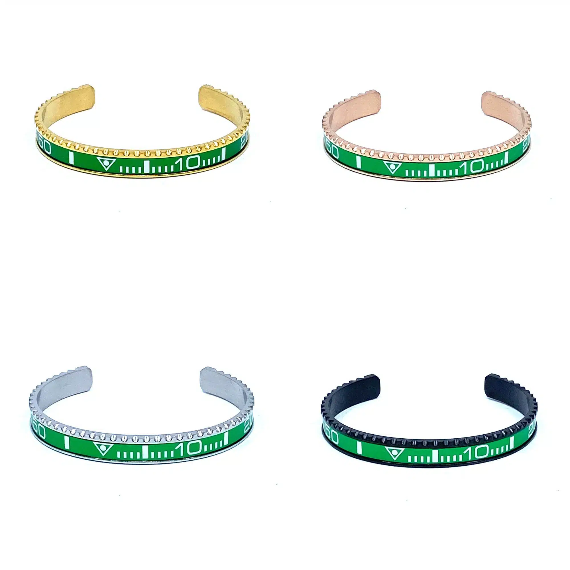 Speedometer Style Bracelet 1pcs Stainless Steel Watch Bangle, Green with Digits