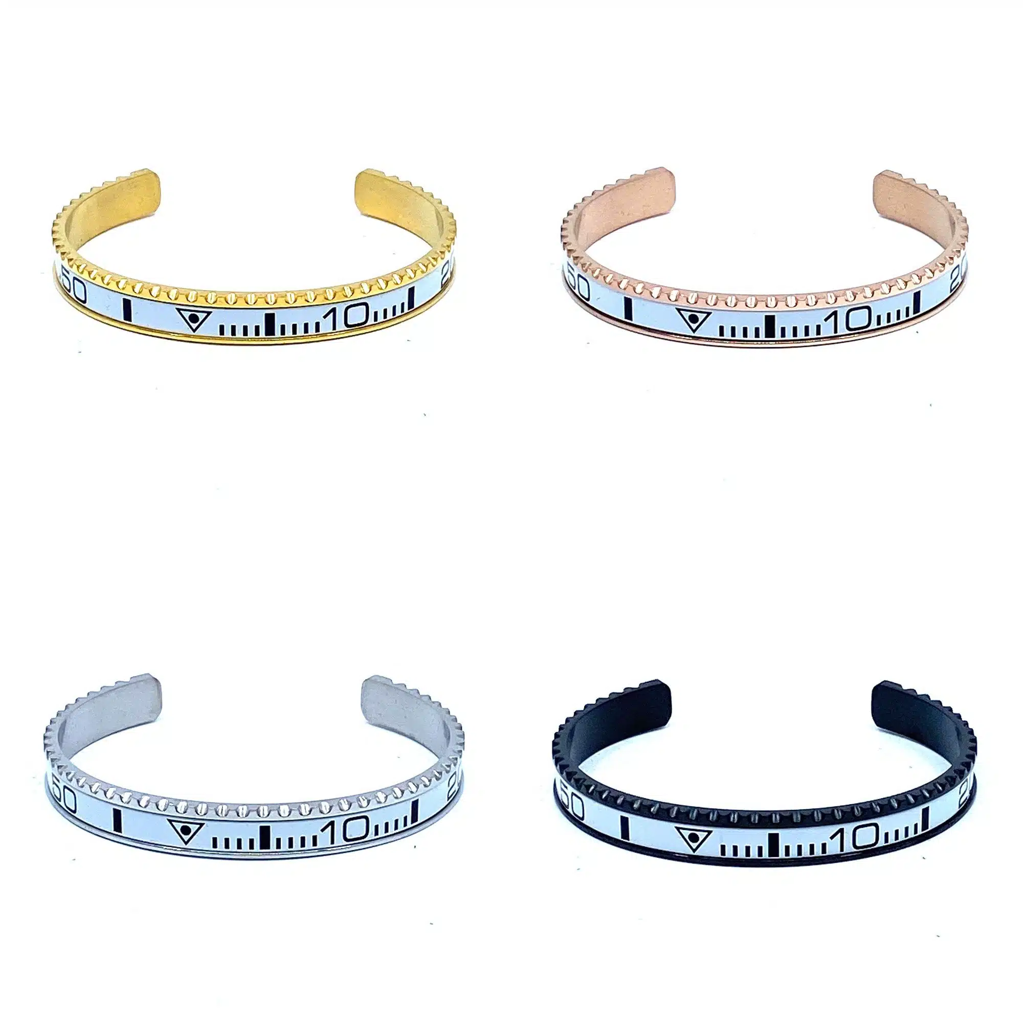 Speedometer Style Bracelet 1pcs Stainless Steel Watch Bangle, White with Digits