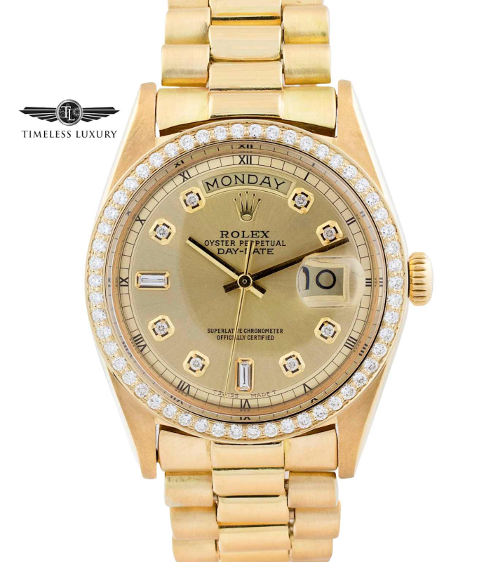 | Bracelet | Jubilee, Oyster, or President | President (exclusive) |