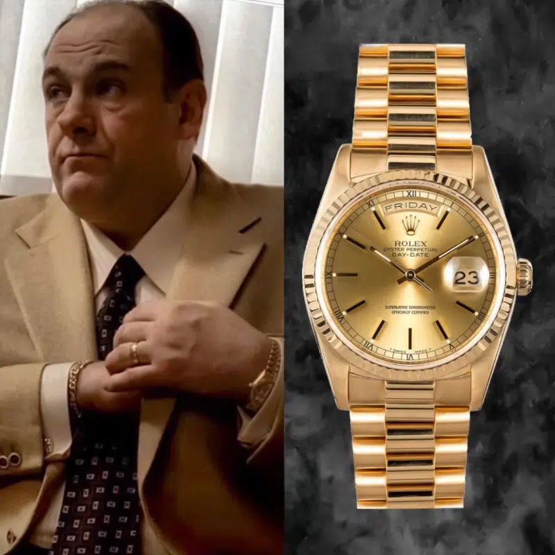 If forced to choose which watch best defines Tony Soprano, the answer must be his 18k yellow gold Rolex Day-Date. More than any other single accessory, this timepiece captured the essence of his character: powerful, traditional, slightly ostentatious, but ultimately timeless. The watch served as Tony’s crown, marking him as the king of his particular castle.