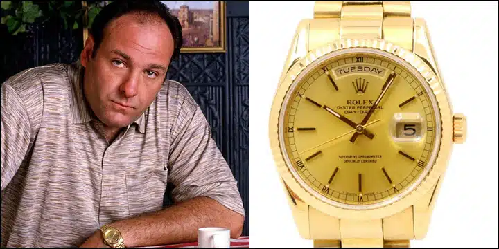 If one watch defines Tony Soprano, it’s his 18k yellow gold Rolex Day-Date, commonly known as the “President.” Worn throughout virtually every episode of the series, this timepiece became as much a part of Tony’s character as his distinctive voice or his love for ducks. The Tony Soprano Rolex choice was no accidentโthe Day-Date has been the go-to watch for power players since its introduction in 1956.
