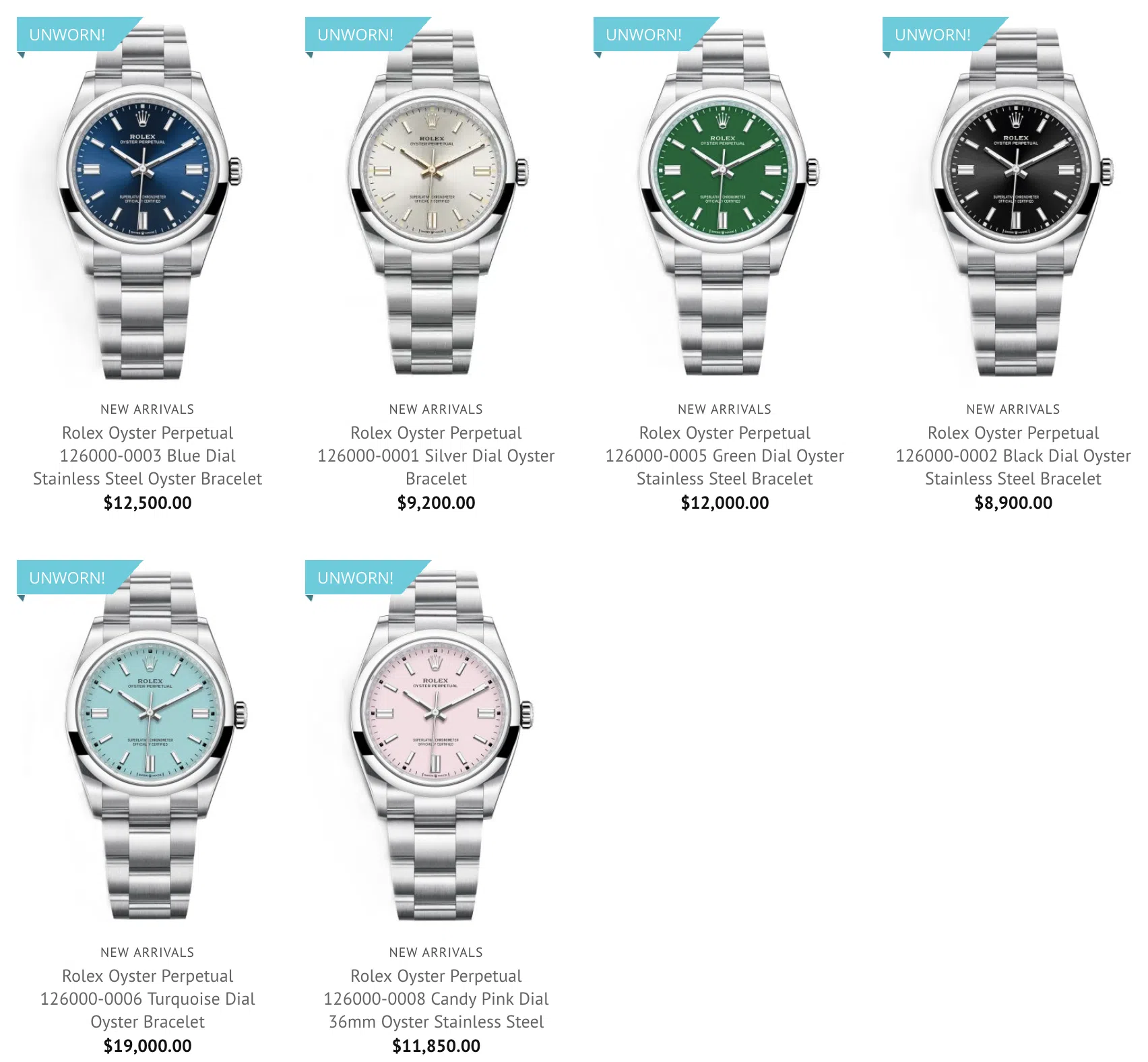 The cost of a Rolex 126000 Oyster Perpetual in our collection goes from USD $10,500 to USD $21,100 depending on the condition of the timepiece.