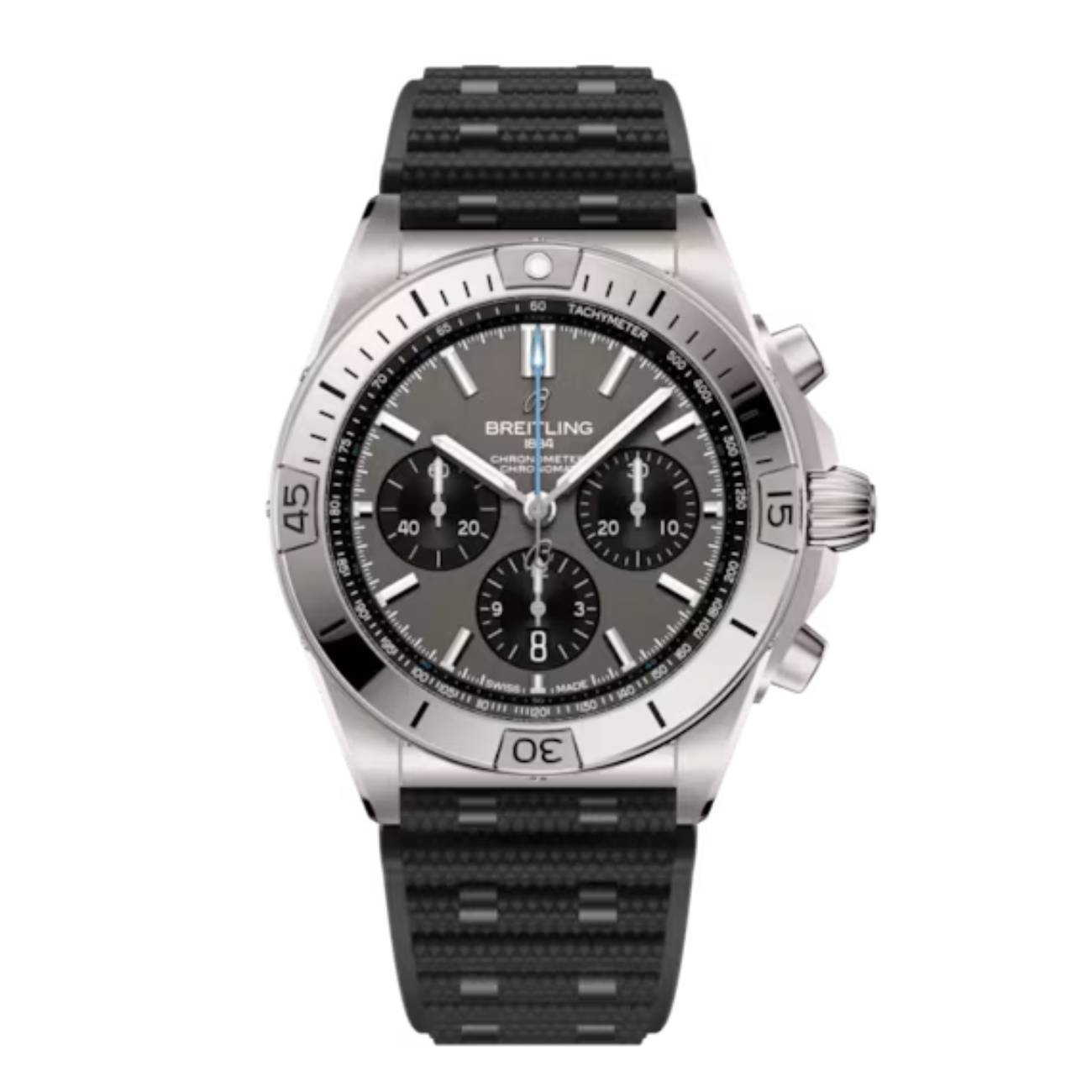 The Breitling Chronomat B01 collection represents a modern evolution of the iconic Chronomat series, first introduced in 1984 as Breitling’s flagship chronograph. The EB0134101M1S1 model showcases exceptional engineering with its lightweight titanium construction, offering superior strength-to-weight ratio while maintaining the robust character expected from Breitling instruments. The design philosophy balances technical sophistication with practical functionality, featuring a unidirectional ratcheted bezel that provides precise timing capabilities for professional applications. The in-house Caliber B01 movement represents over five years of development, featuring a vertical clutch system and column wheel mechanism that ensures smooth chronograph operation and exceptional accuracy. This timepiece excels in various scenarios from professional diving and aviation to sophisticated urban environments, making it an ideal companion for those who demand both performance and elegance. The 15.1mm case thickness and 50.5mm lug-to-lug dimensions create a substantial wrist presence while maintaining wearing comfort through thoughtful ergonomic design. With its 200-meter water resistance and robust construction, this Chronomat embodies Breitling’s commitment to creating instruments for professionals while maintaining luxury watchmaking standards.