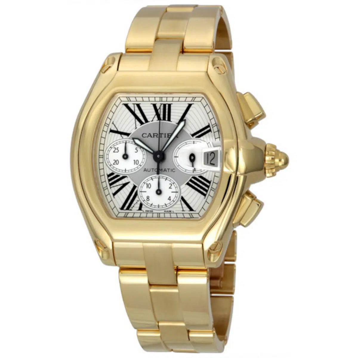 Cartier Roadster W62021Y2 Silver Dial Yellow Gold Watch