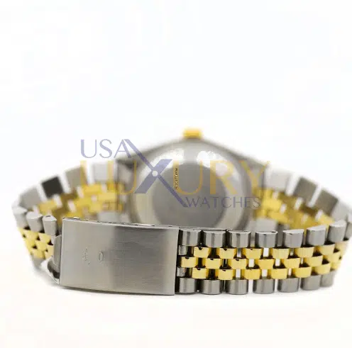 Oyster case is Stainless Steel with 18k Yellow Gold Crown and Acrylic Glass with Magnifier – Cyclops Lens. The date indicator located on 3 o’clock. The watch has Jubilee 18k Yellow Gold and Stainless-Steel bracelet with Folding Clasp. The movement is automatic. Made in Switzerland.