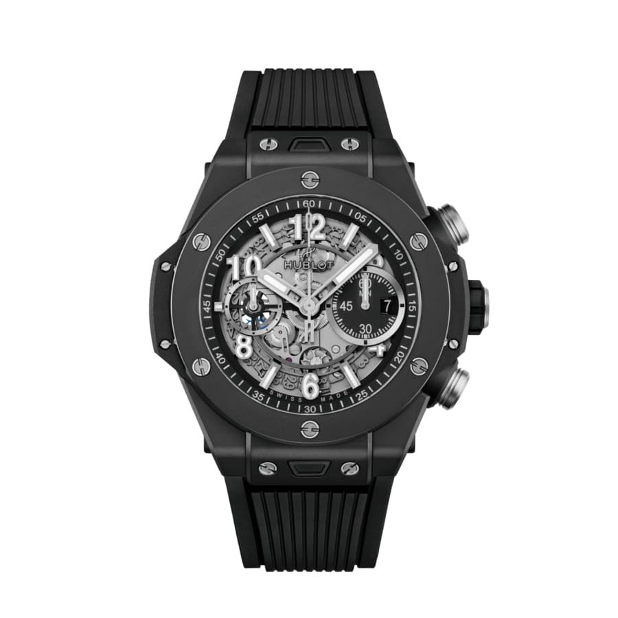 The Hublot Big Bang collection represents a revolutionary approach to luxury watchmaking, where the ‘Art of Fusion’ philosophy combines unexpected materials with cutting-edge horology. This 421.CI.1170.RX model exemplifies this vision through its black ceramic case construction, offering exceptional scratch resistance and a distinctive matte finish. The skeletonized silver dial provides a captivating view of the sophisticated HUB1280 automatic movement, featuring a column wheel chronograph mechanism that ensures precise timing functions. With 43 jewels, 354 components, and a 72-hour power reserve, this movement represents Hublot’s commitment to technical innovation. The watch’s design balances sporty functionality with urban sophistication, making it equally suited for professional environments, social occasions, and active lifestyles. The black rubber strap ensures comfort during extended wear, while the deployment clasp provides secure fastening. As part of the iconic Big Bang series, this timepiece continues Hublot’s legacy of challenging conventions while maintaining Swiss precision standards.