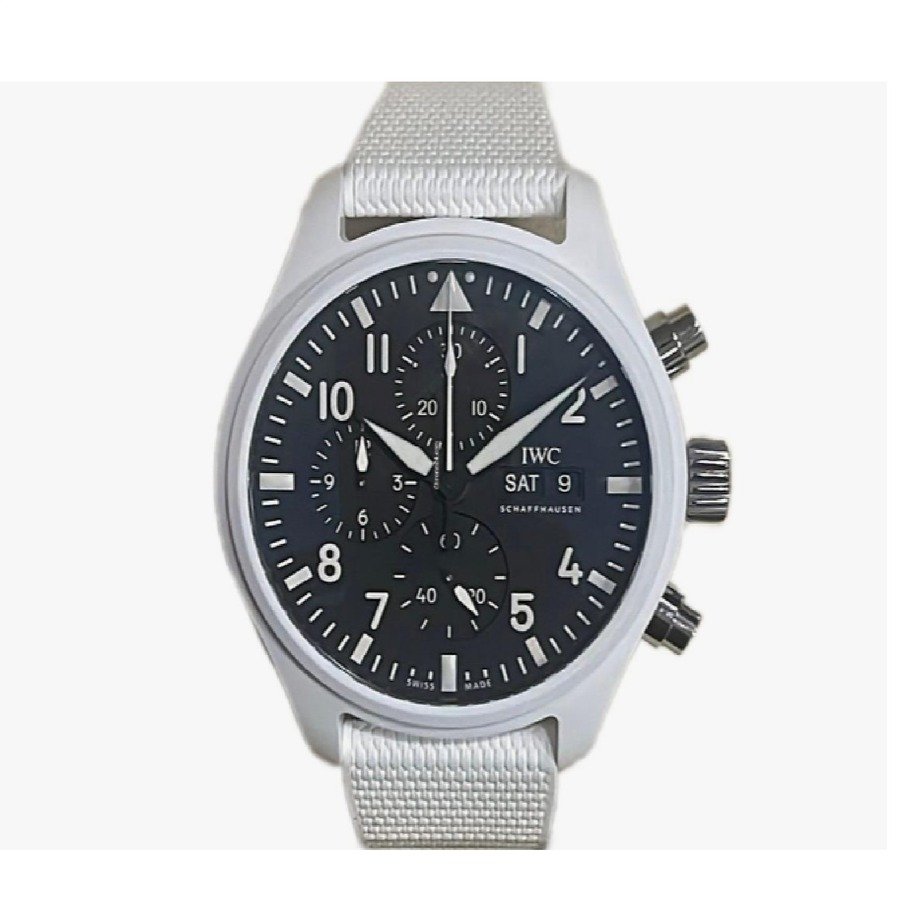 The IWC Pilot Chronograph Top Gun Edition ‘Lake Tahoe’ represents the pinnacle of aviation-inspired watchmaking, drawing from IWC’s rich heritage in creating instruments for professional pilots. This distinctive timepiece features a white ceramic case that not only provides exceptional durability and scratch resistance but also pays homage to the snow-covered landscapes of its namesake region. The matte black dial with its clear Arabic numerals and luminous markers ensures maximum readability in all lighting conditions, a crucial feature for aviation professionals. The chronograph complication, displayed through three subdials, offers precise timing capabilities while maintaining the watch’s clean, functional aesthetic. Crafted with IWC’s signature attention to detail, this timepiece combines technical sophistication with rugged reliability. The white rubber strap provides both comfort and durability, making it ideal for active lifestyles and professional use. As part of the Top Gun collection, this watch embodies the spirit of elite naval aviation while maintaining the refined elegance expected from IWC. Perfect for aviation enthusiasts, professionals, and collectors who appreciate engineering excellence and functional design, this timepiece serves as both a reliable instrument and a statement of sophisticated taste.