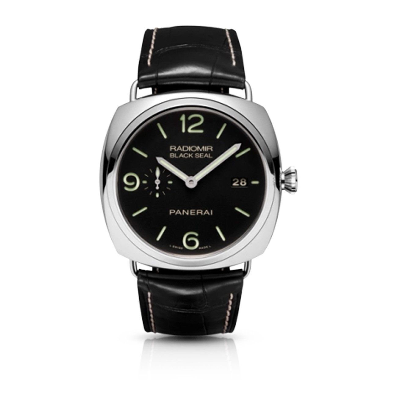The Panerai Radiomir Black Seal PAM00388 continues the brand’s storied maritime tradition, drawing inspiration from the historical timepieces created for Italian Navy commandos. Its distinctive 45mm cushion case design, a signature Panerai silhouette, provides exceptional wrist presence while maintaining the brand’s characteristic understated elegance. The black dial features a sophisticated mix of Arabic numerals and stick indexes, all treated with Super-LumiNova for optimal legibility in low-light conditions – a crucial feature developed for military diving operations. The Panerai caliber P.9000 movement represents the brand’s commitment to in-house manufacturing excellence, offering robust performance with its 3-day power reserve and date complication. Crafted from marine-grade stainless steel, this timepiece embodies the rugged reliability that made Panerai the choice of professional divers and naval forces. The open case back allows appreciation of the finely finished movement, while the black leather strap echoes the vintage aesthetic of early diving instruments. Ideal for both formal occasions and adventurous pursuits, the Radiomir Black Seal seamlessly blends Italian design sophistication with uncompromising functionality.
