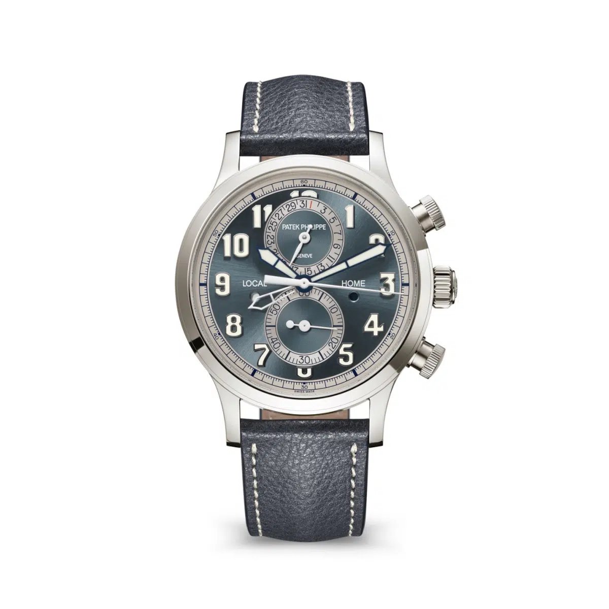 Patek Philippe 5924G-001 Complications Sunburst Blue-Grey Dial Navy Blue Calfskin Leather Strap