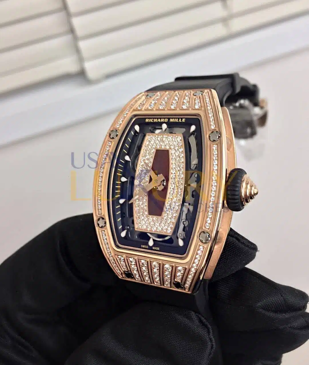Richard Mille RM 07-01 Rose Gold Red Snow Diamonds Jasper Dial Watch