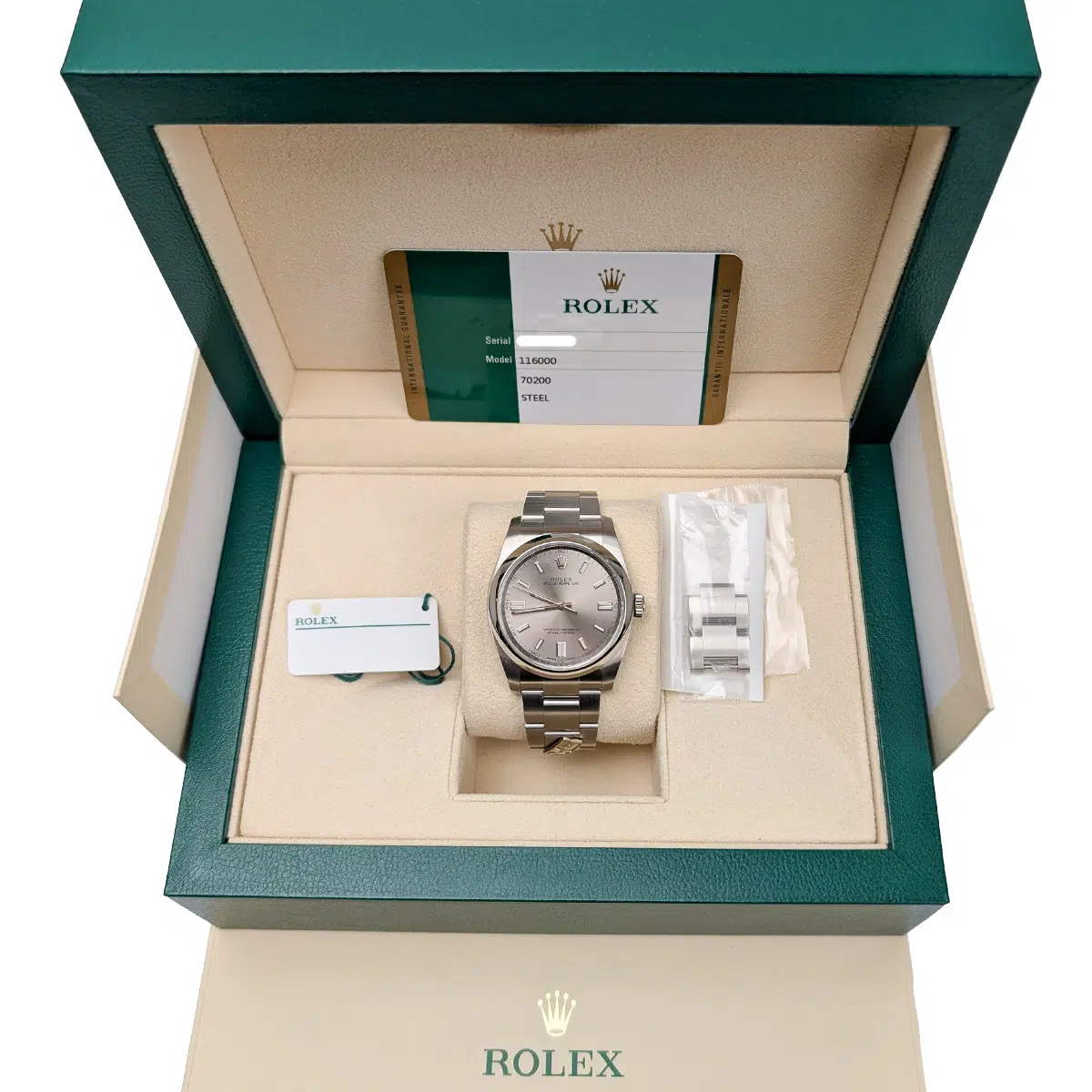 Rolex 116000 Domino’s Oyster Perpetual 36mm Silver Dial Watch