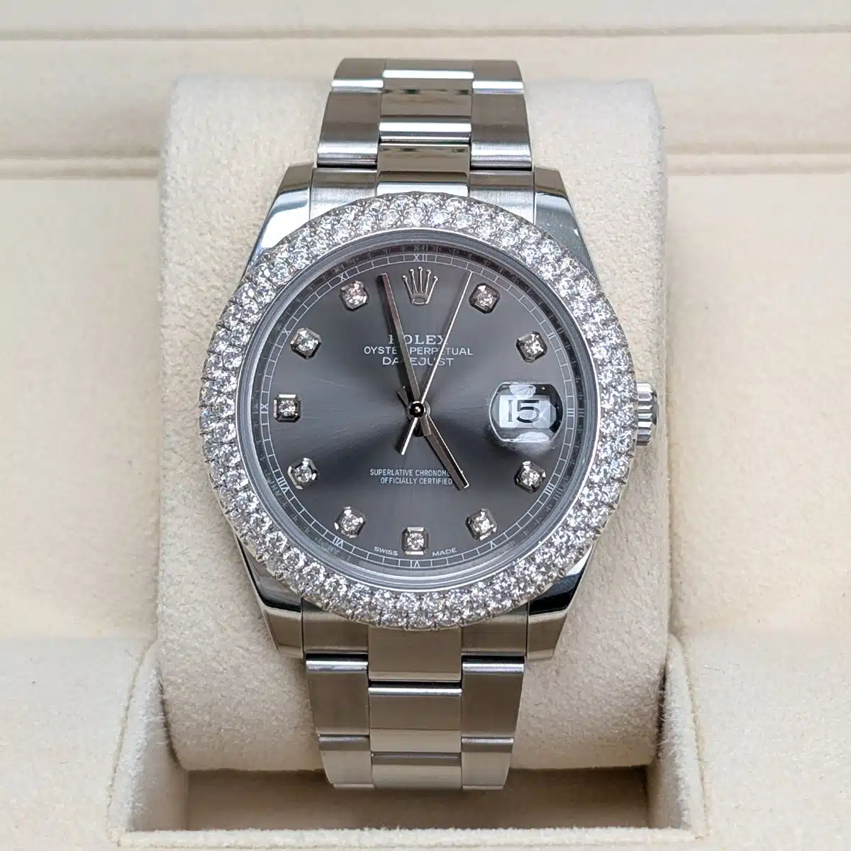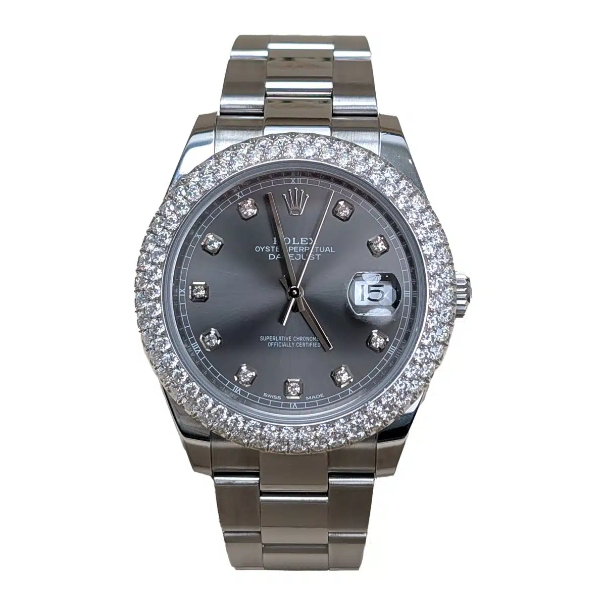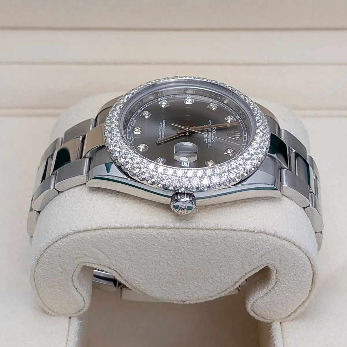 Rolex 126300 Rhodium Diamond 41mm Dial Aftermarket Diamond Bezel